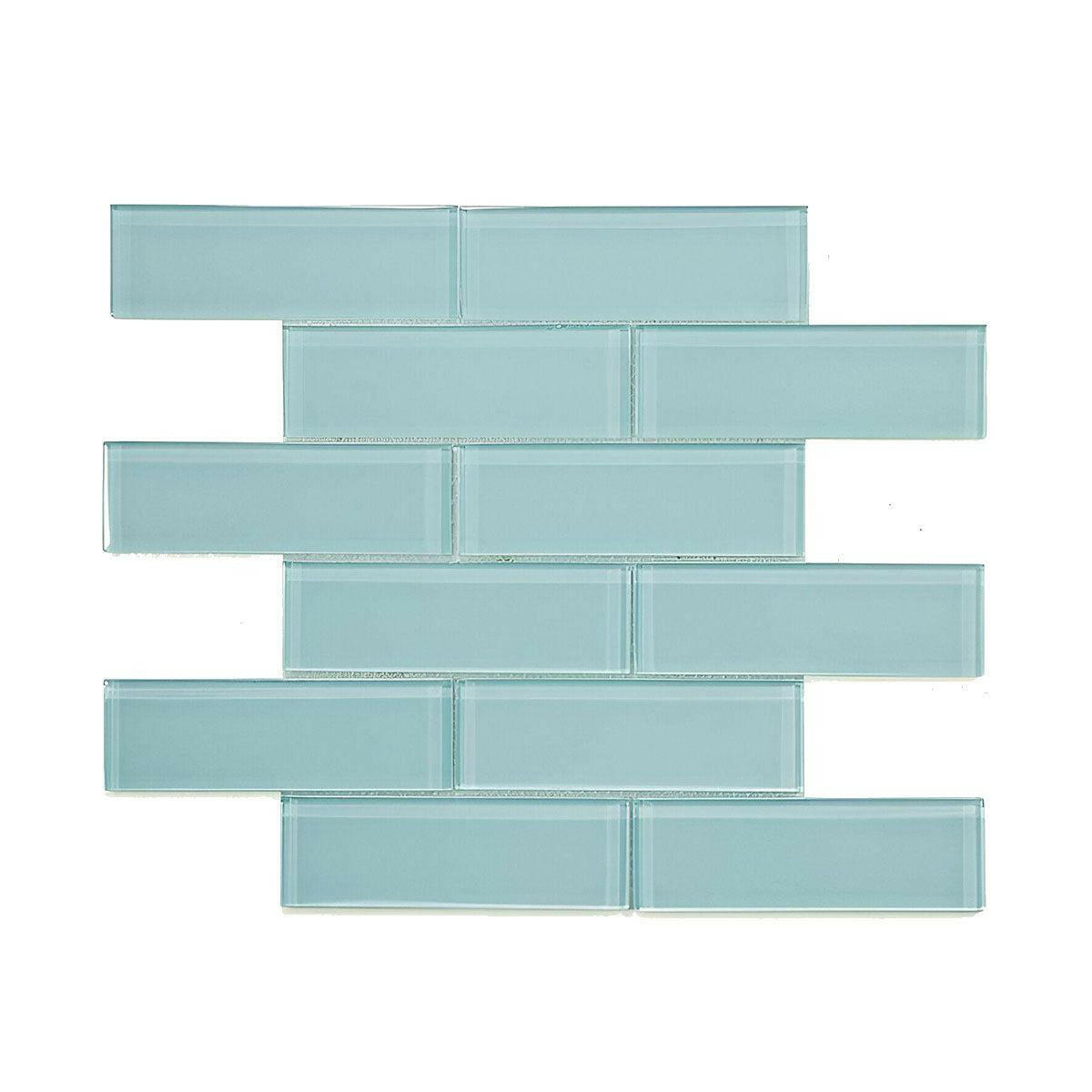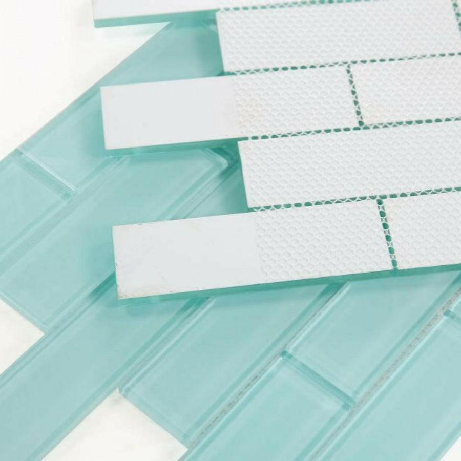 2x6 Oceanhouse Mint Glossy Subway Glass Mosaic Tile