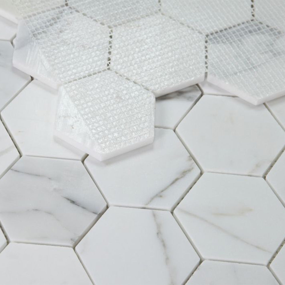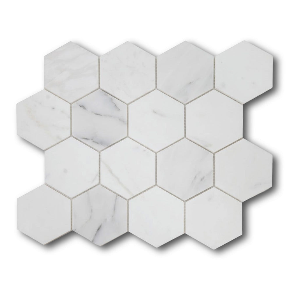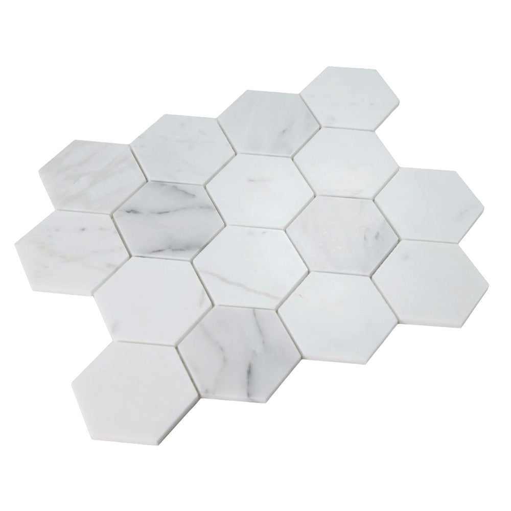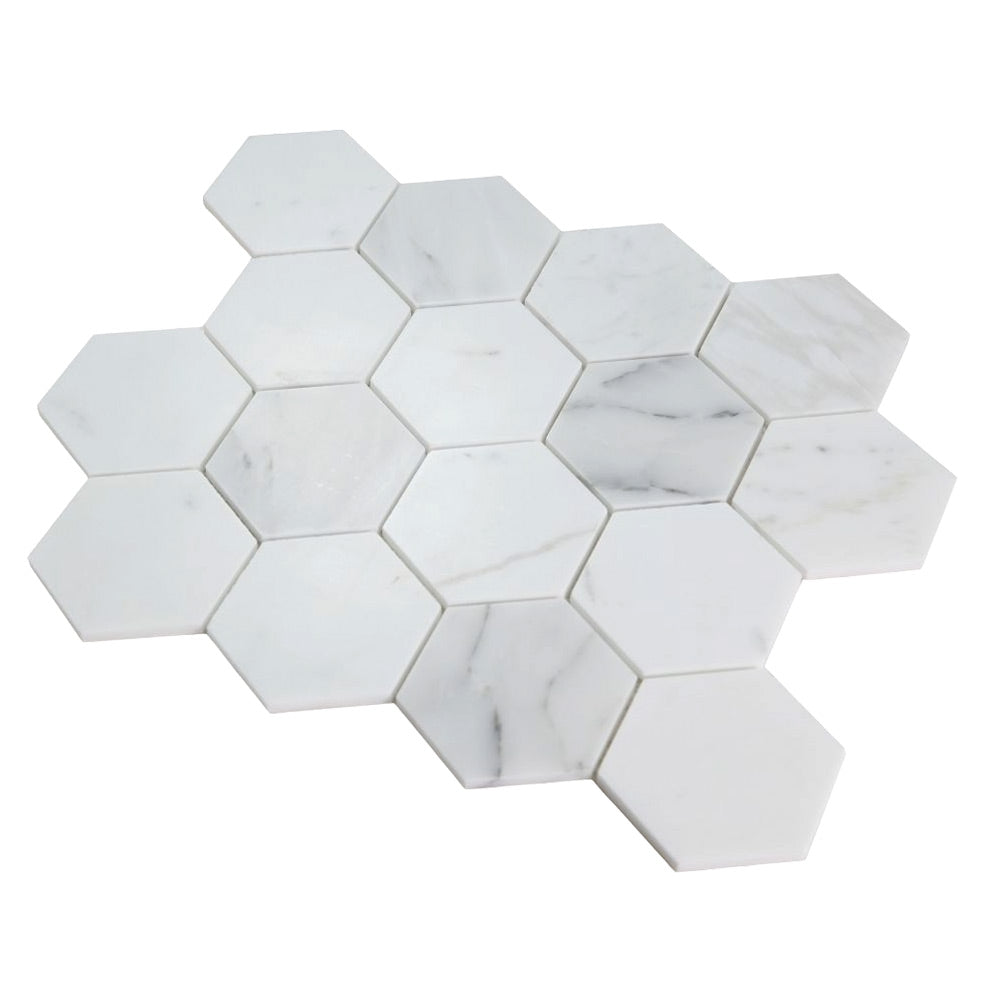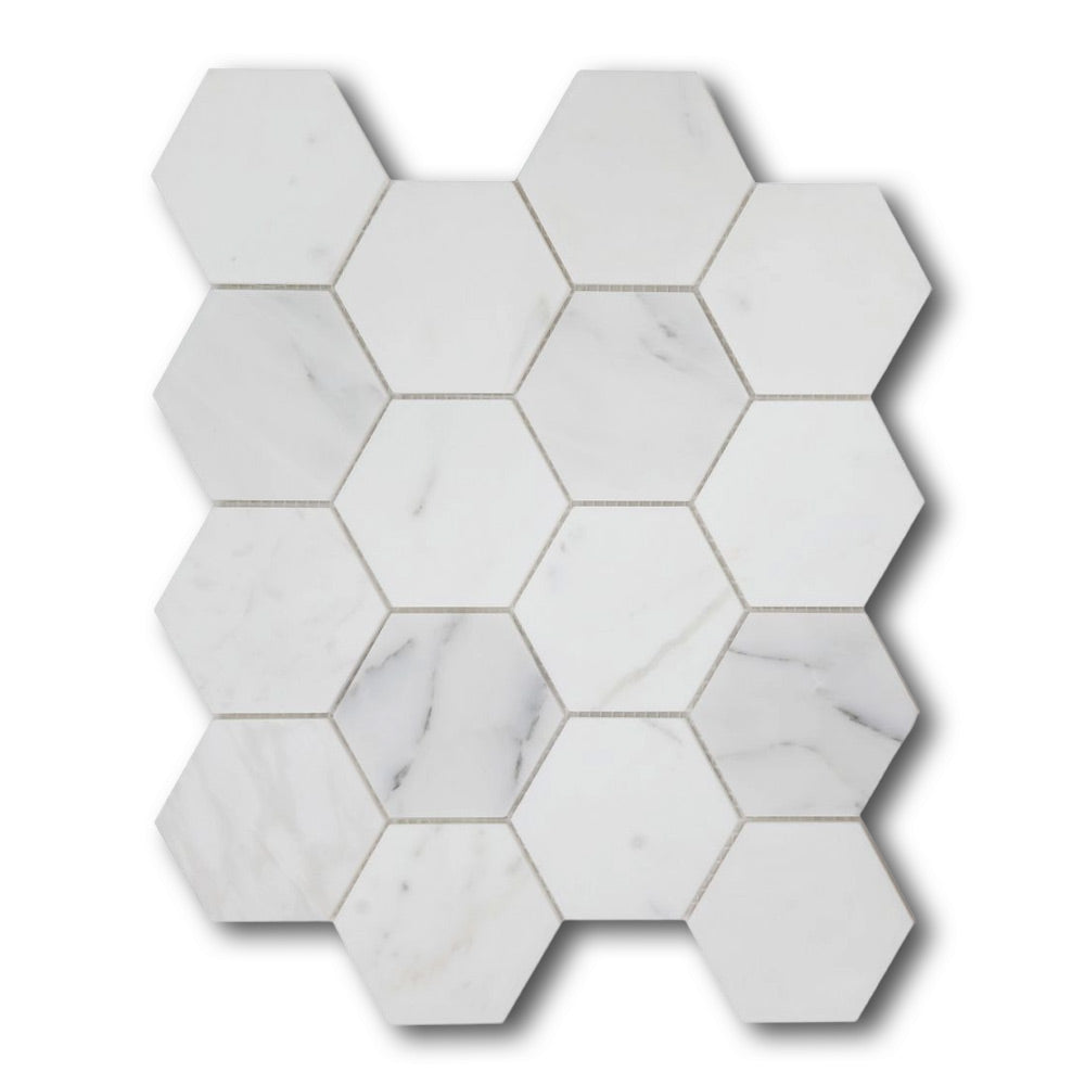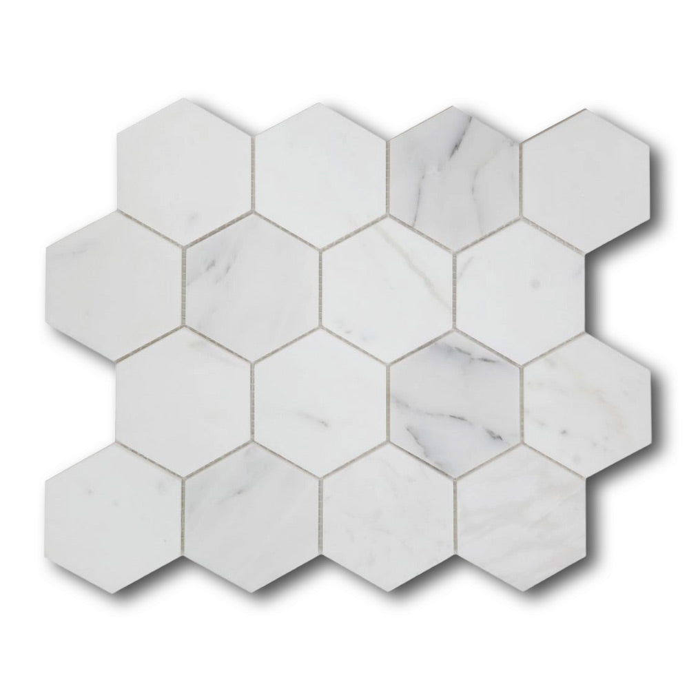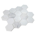 3" Beehive Calacatta White Honed Hexagon Marble Mosaic Tile