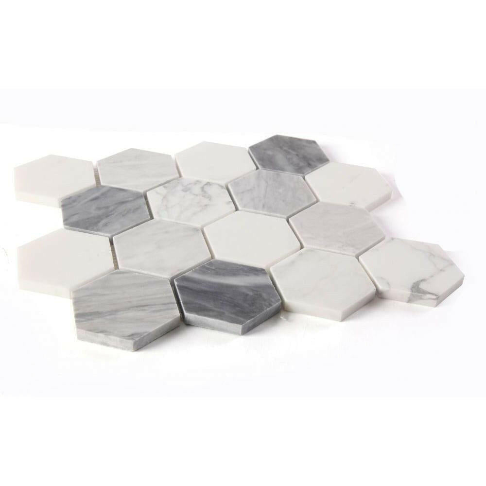 3" Beehive Dusk Honed Hexagon Marble Mosaic Tile