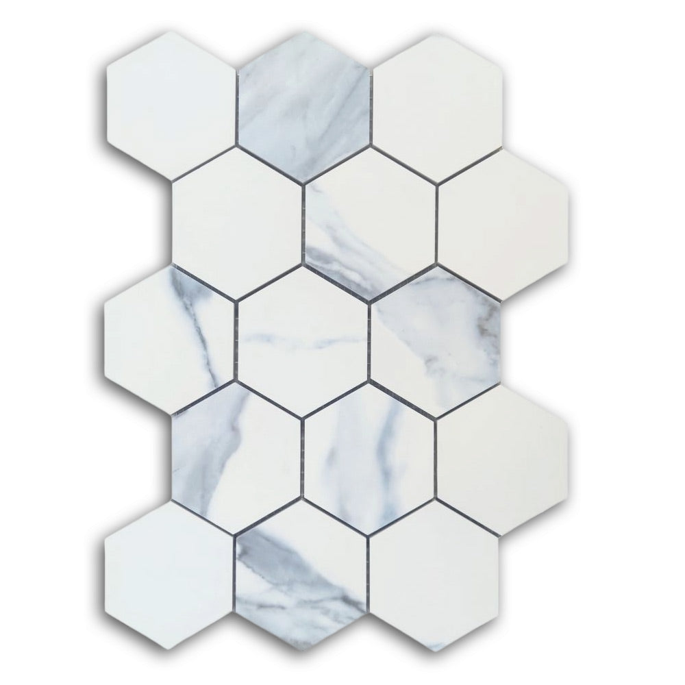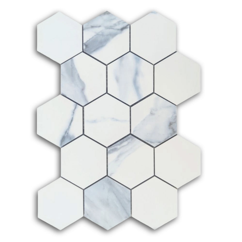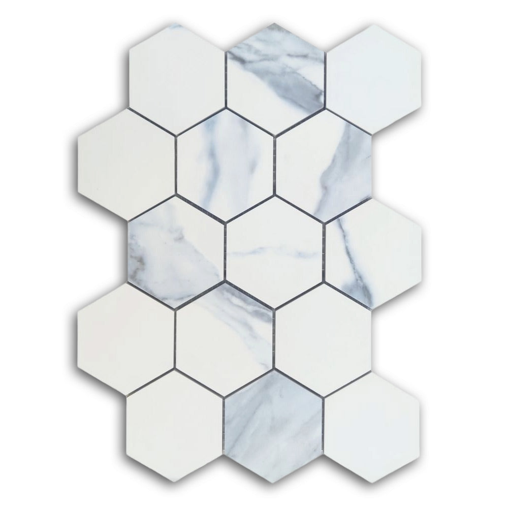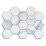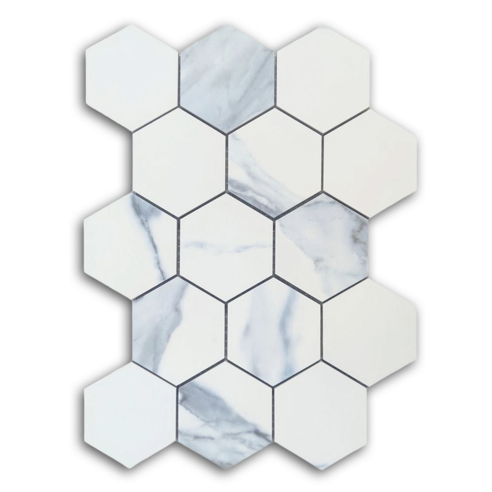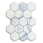 3" Calacatta Blue Matte Hexagon Porcelain Mosaic Tile