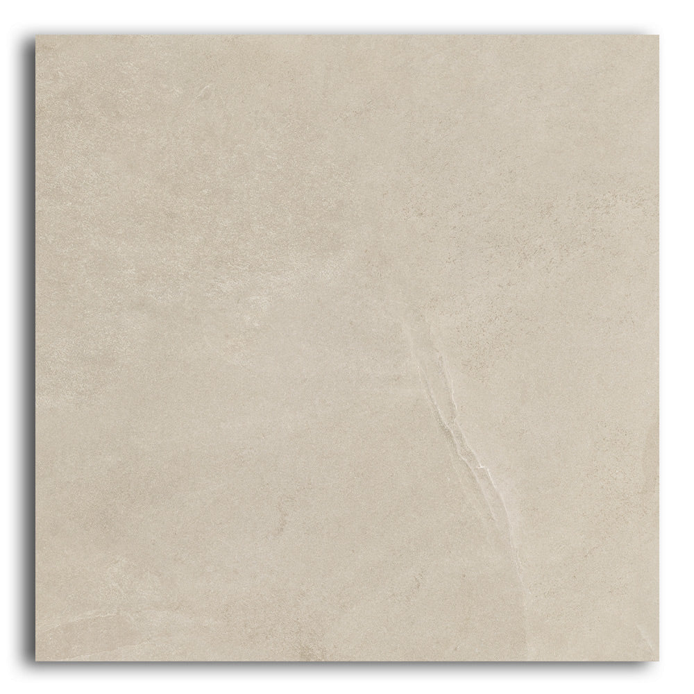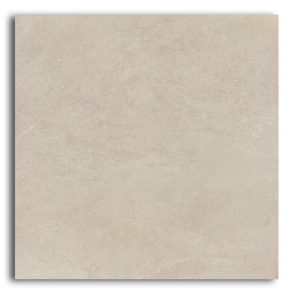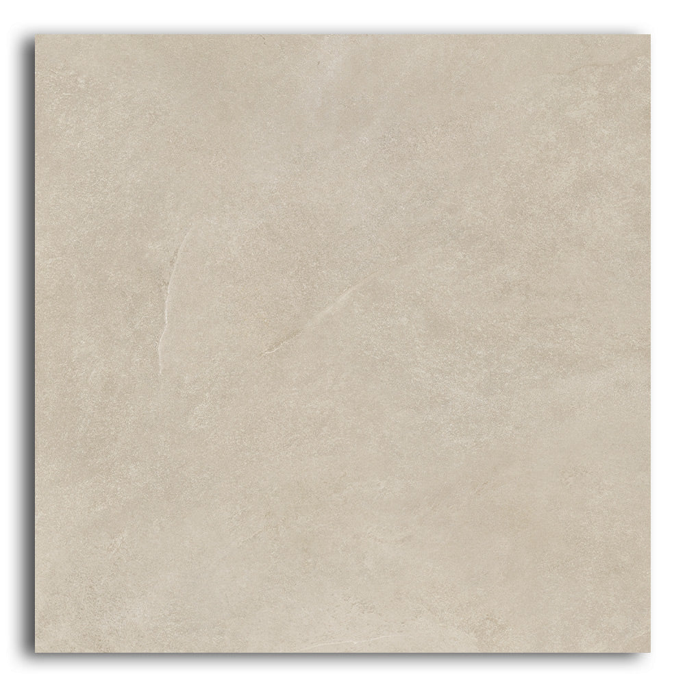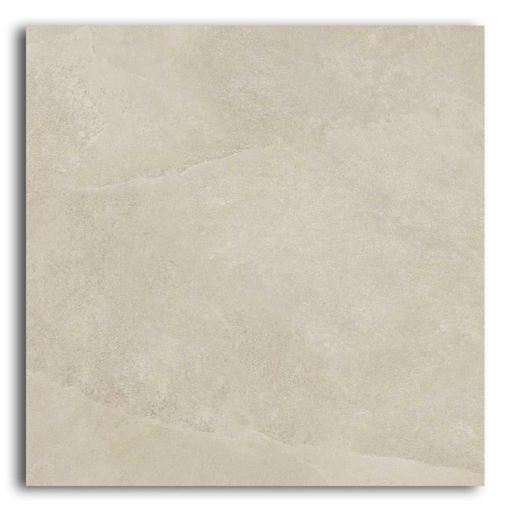 The Ecoslate Beige porcelain tile features subtle slate textures in a warm, sandy beige tone. Each 36x36 inch tile covers more area with fewer grout lines, helping to visually expand your space. Additionally, the natural matte finish softens the surface while providing improved slip resistance—perfect for busy or moisture-prone areas.