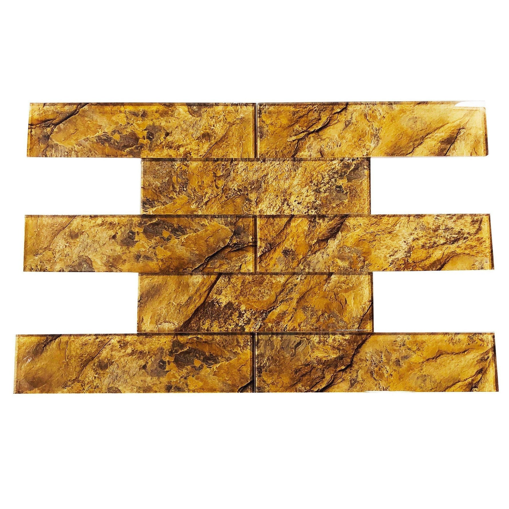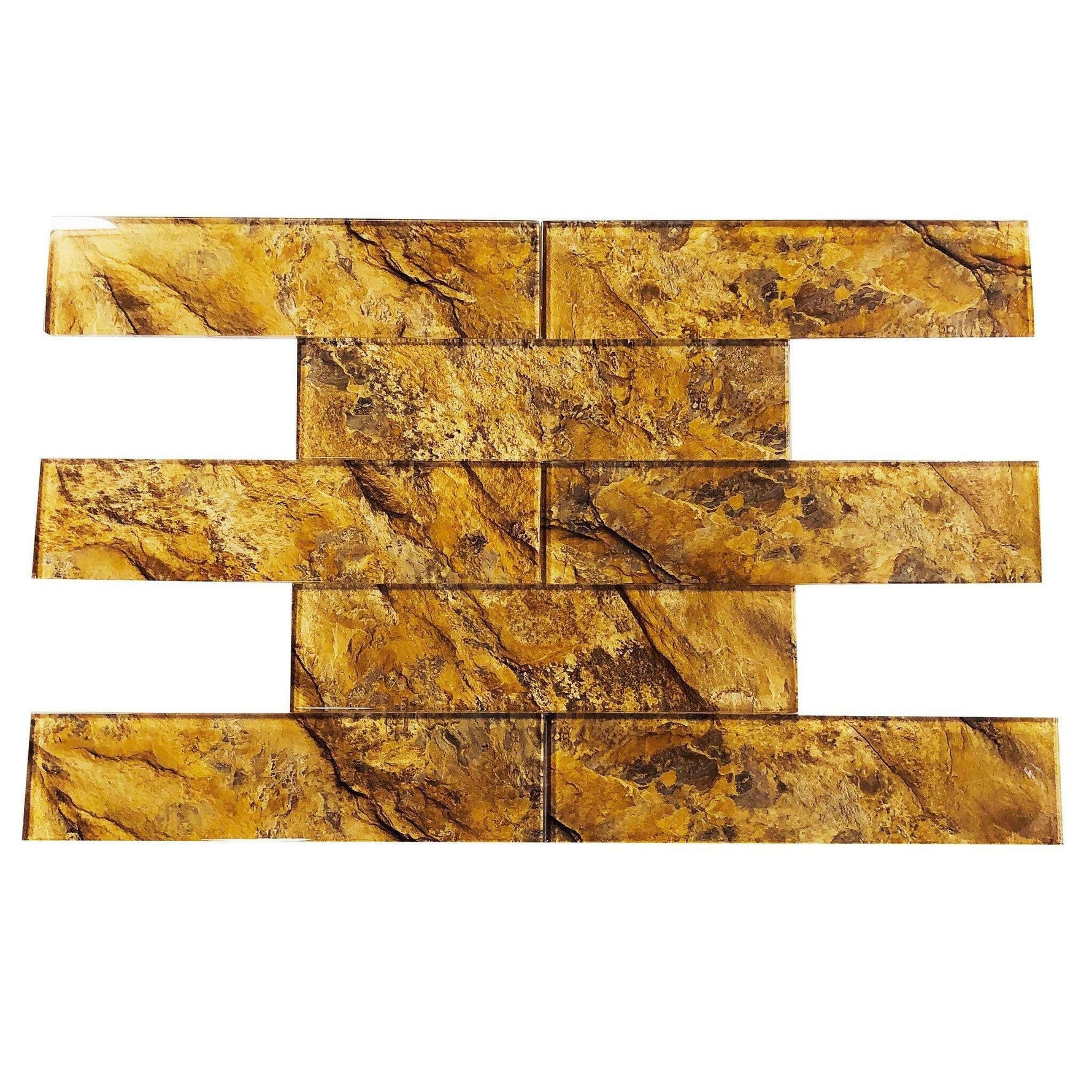 3x12 Golden Rock Marble Look Glass Subway Tile