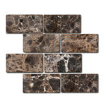 Premium Quality 3" X 6" SPANISH EMPERADOR DARK MARBLE TUMBLED TILE