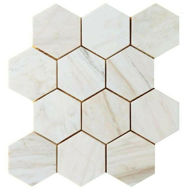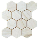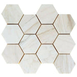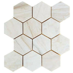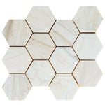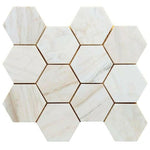 4" Beehive Wooden White Honed Hexagon Marble Mosaic Tile