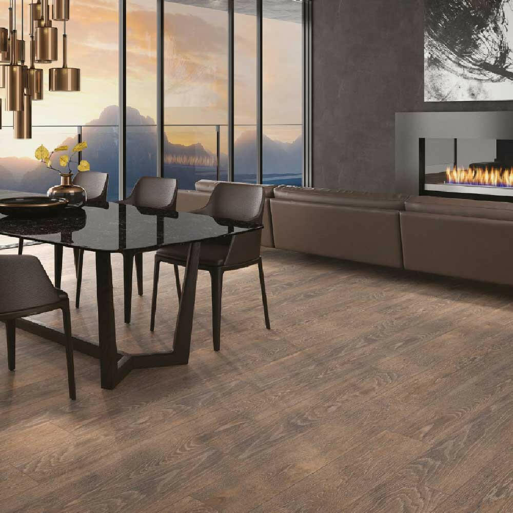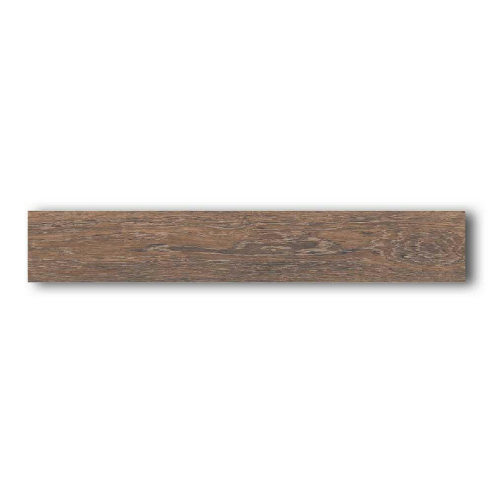 The Vintage Brown tile mimics the character of reclaimed wood. It features deep brown tones, wood knots, and realistic grain patterns. Additionally, its matte finish adds texture while reducing glare. As a result, it creates an inviting, comfortable surface that looks just like real wood.