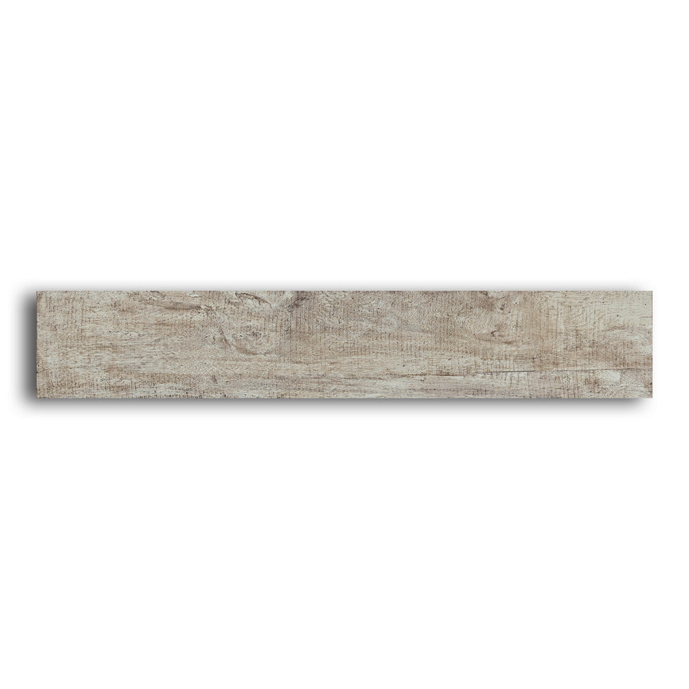 This tile mimics the soft texture and natural variations found in reclaimed wood flooring. However, unlike real wood, it is resistant to water, stains, and scratches, making it ideal for kitchens, bathrooms, and high-traffic areas. In addition, the porcelain body ensures long-lasting performance, while the light vintage white tone brightens spaces and pairs well with many design styles.