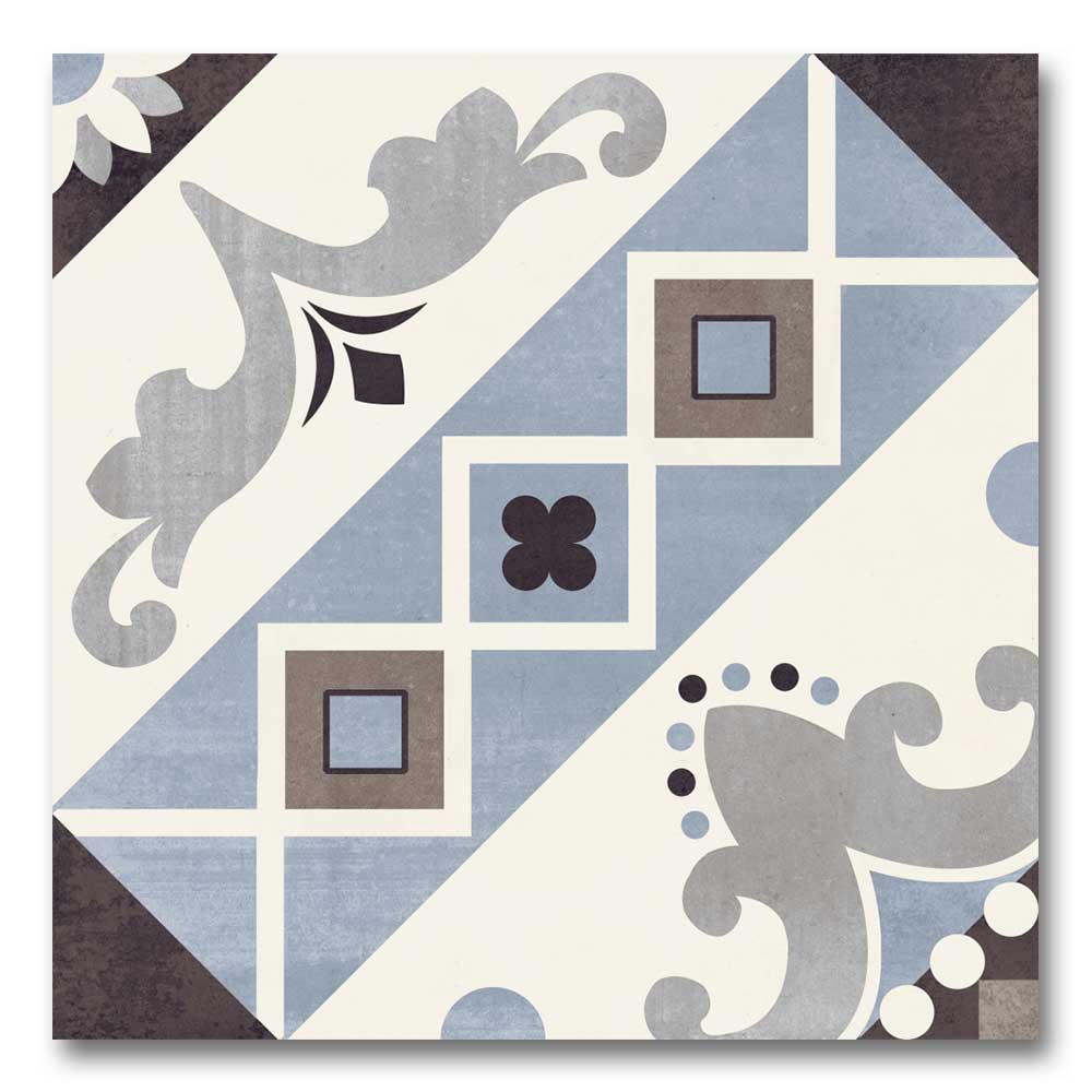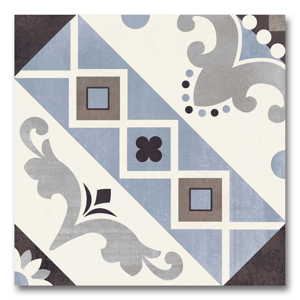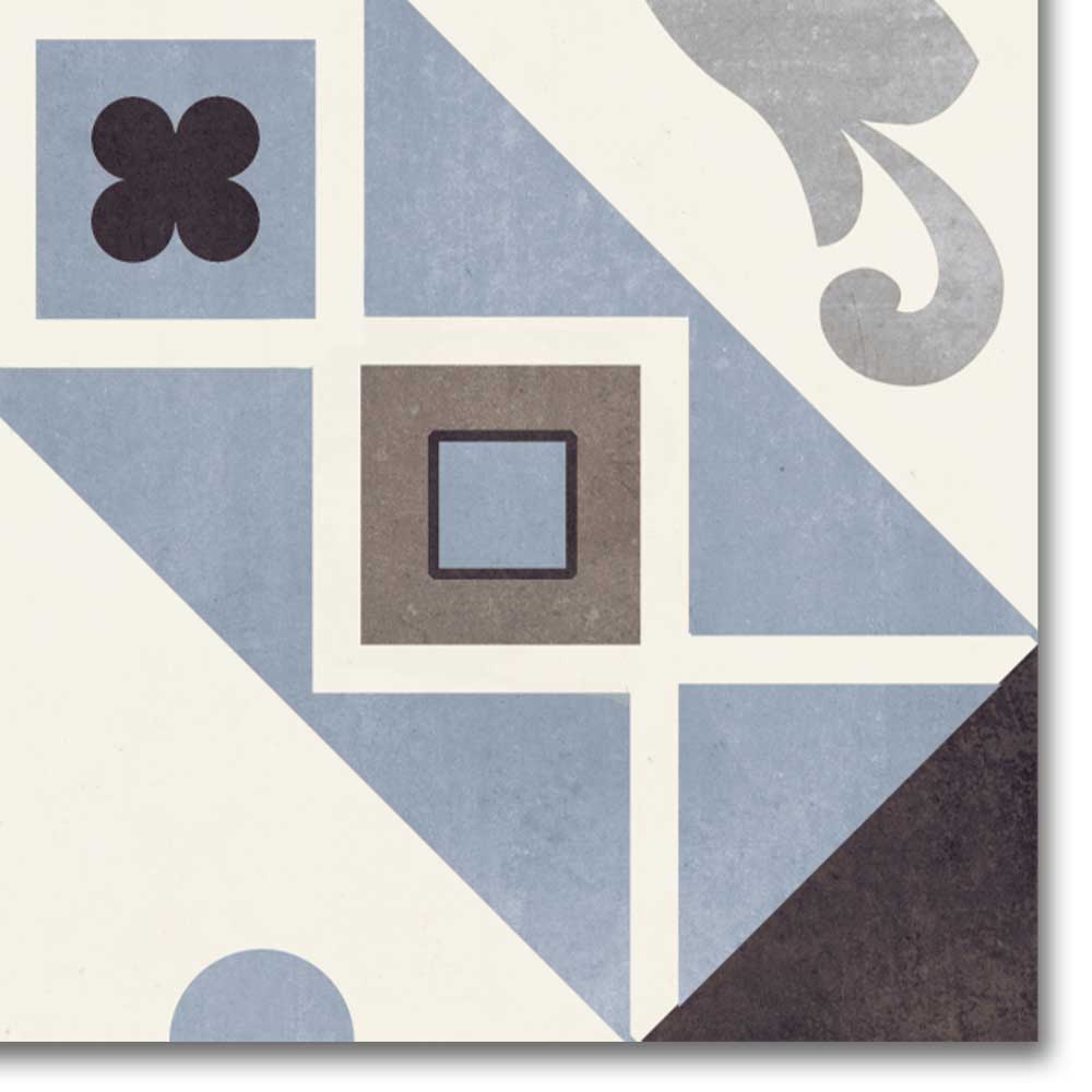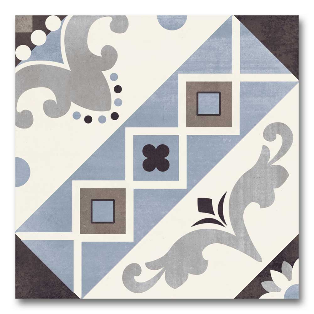 Drawing inspiration from the Belleville district of Paris, known for its artistic energy and bold architecture, this tile features a striking geometric pattern that adds instant character. Deep bluish hues combined with soft off-whites create a perfect contrast, making this tile a standout in both contemporary and traditional interiors.