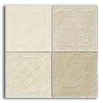 Textured pattern mimics fabric and hand-cut travertine