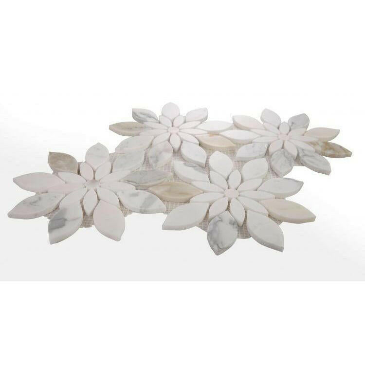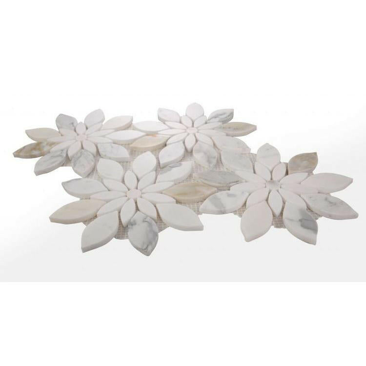 Aster Bloom Calacatta Polished Flower Marble Mosaic Tile