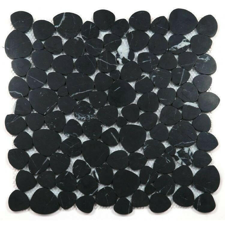 Athena Brigid Marquina Honed Pebble Marble Mosaic Tile