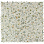 • Item: Athena Minerva Onyx Eclectic 12" x 12" Mosaic Tile, a Mix of Green, White and Honey Onyx with Thassos Marble in Rounded Pieces, Polished Finish