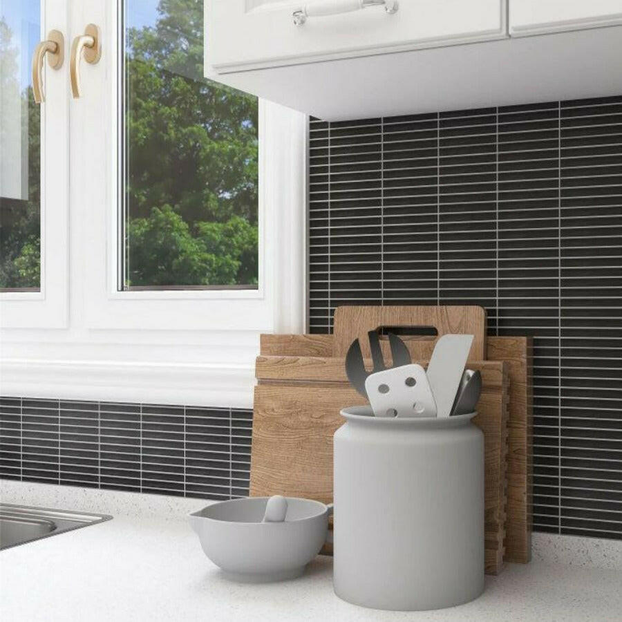 Band Black Matte Linear Porcelain Mosaic Tile
