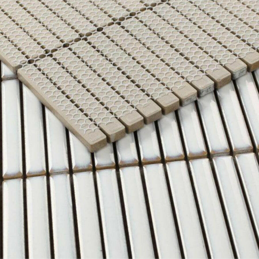 Band White Glossy Linear Porcelain Mosaic Tile