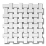 Premium Quality BIANCO DOLOMITE HONED BASKETWEAVE MOSAIC TILE W/ BLUE-GRAY DOTS