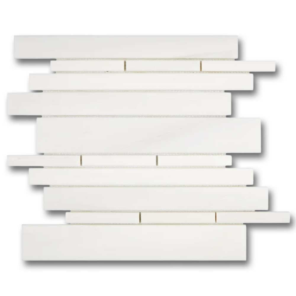 Bianco Dolomite Honed Random Strip Mosaic Tile