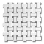 Premium Quality BIANCO DOLOMITE POLISHED BASKETWEAVE MOSAIC TILE W/ BLUE-GRAY DOTS