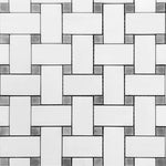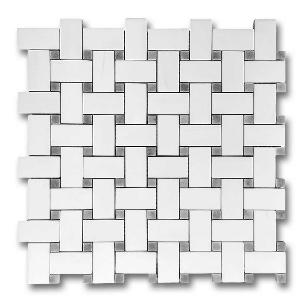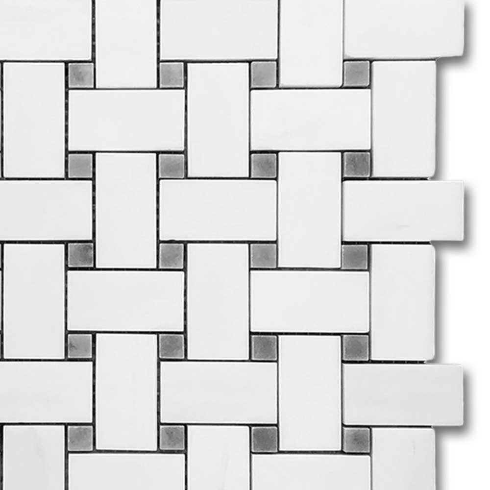 Bianco Dolomite Polished Basketweave Mosaic Tile w/ Blue-Gray Dots