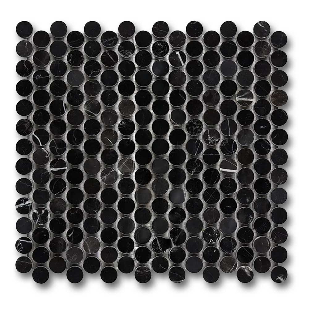 Black Marquina Marble Honed Penny Round Mosaic Tile