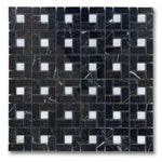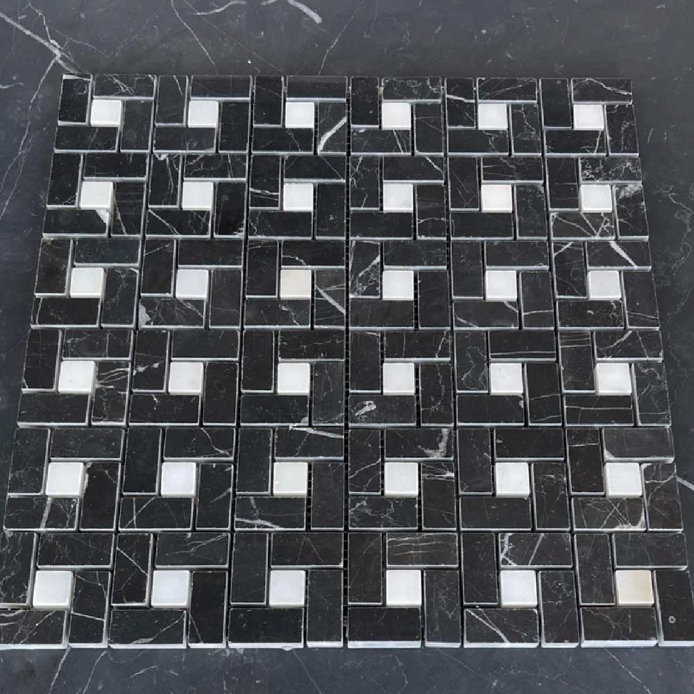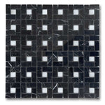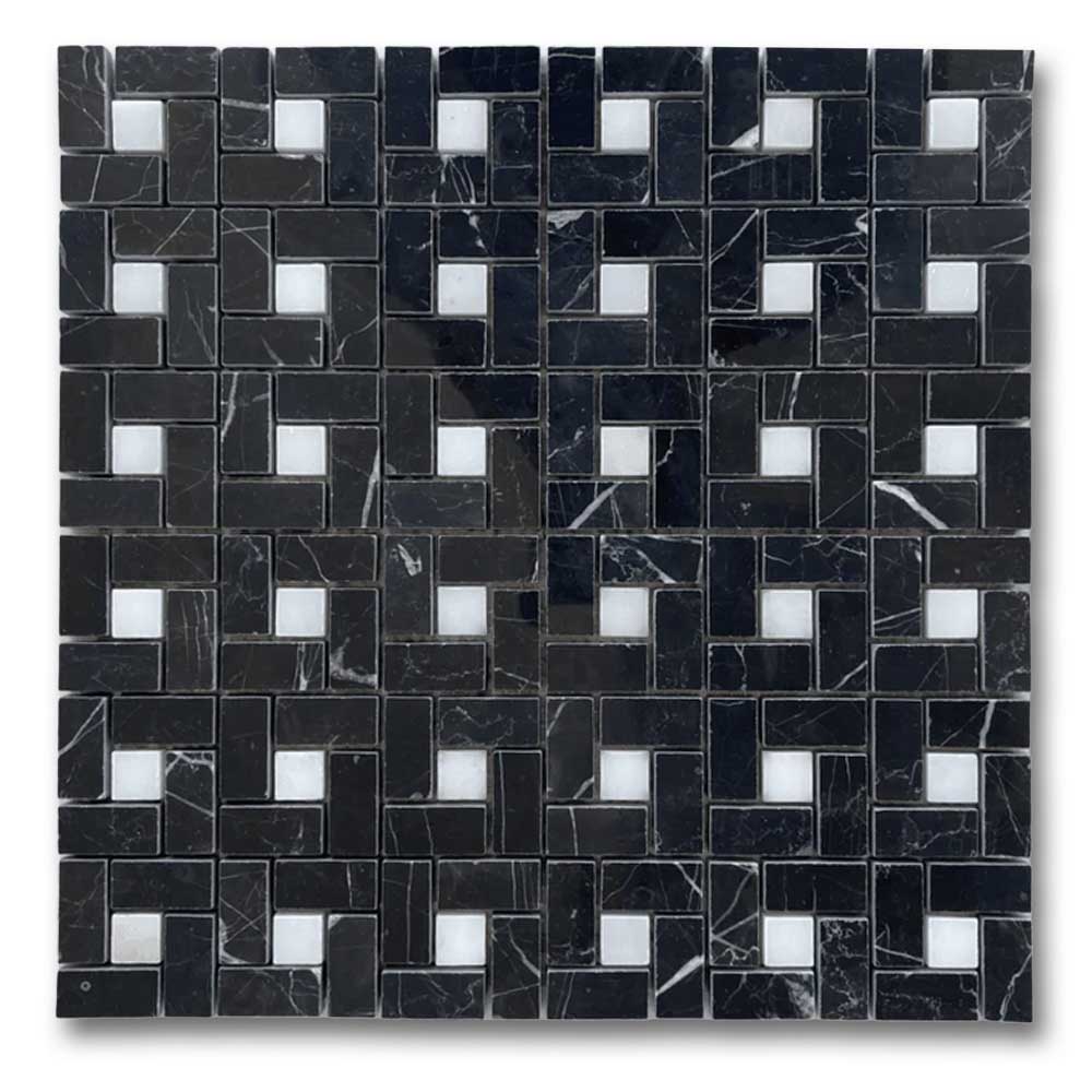 Premium Quality BLACK MARQUINA MARBLE HONED PINWHEEL MOSAIC TILE w/ WHITE DOTS