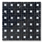 Black Marquina Marble Honed Pinwheel Mosaic Tile w/ White Dots