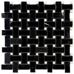 Premium Quality Black Marquina Marble Polished Basketweave Mosaic Tile w/ Black Dots