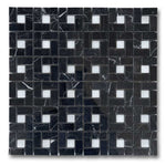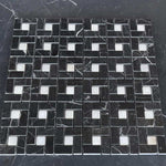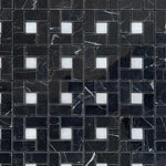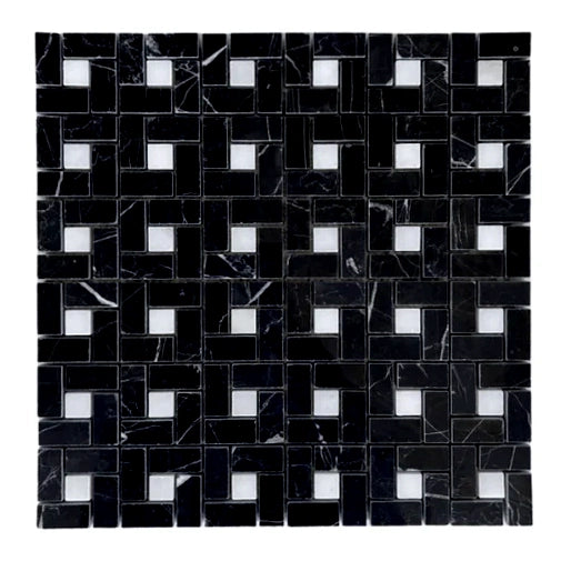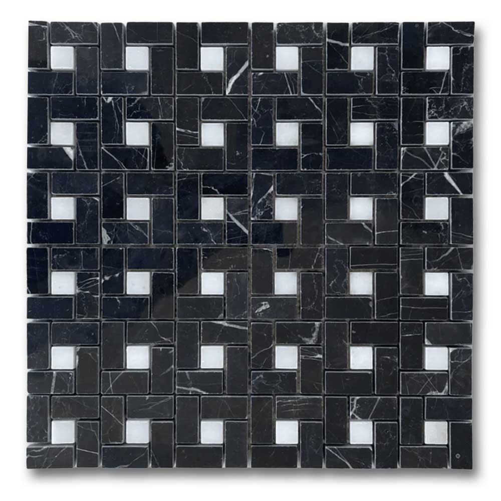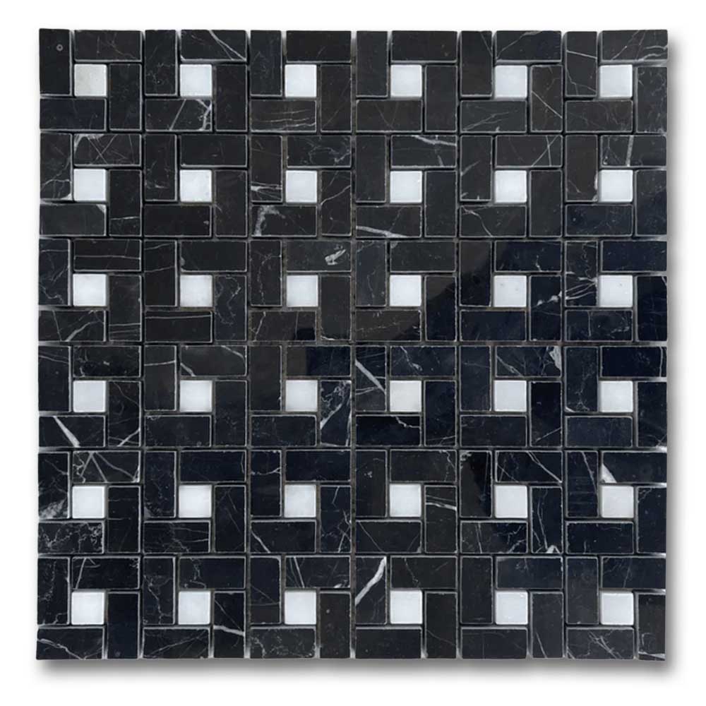 Premium Quality BLACK MARQUINA MARBLE POLISHED PINWHEEL MOSAIC TILE w/ WHITE DOTS