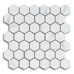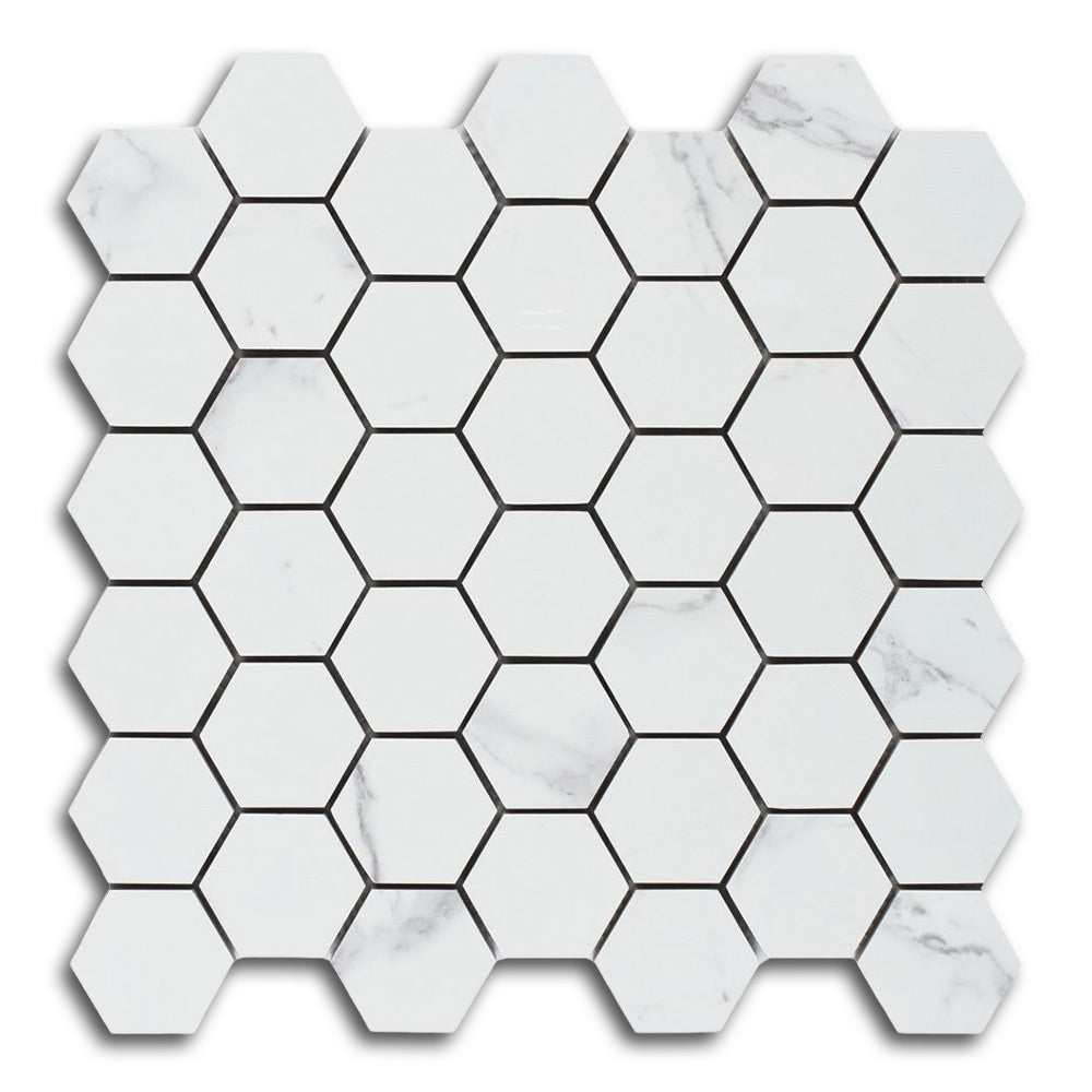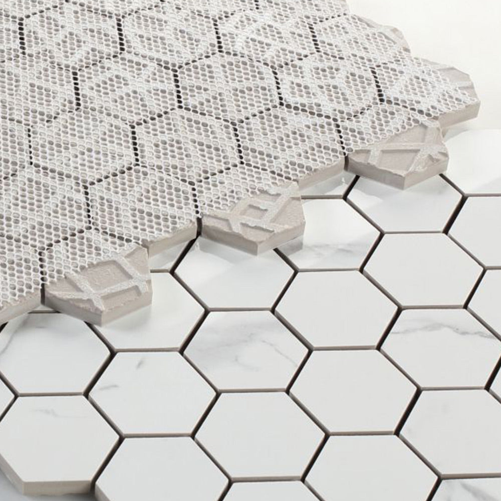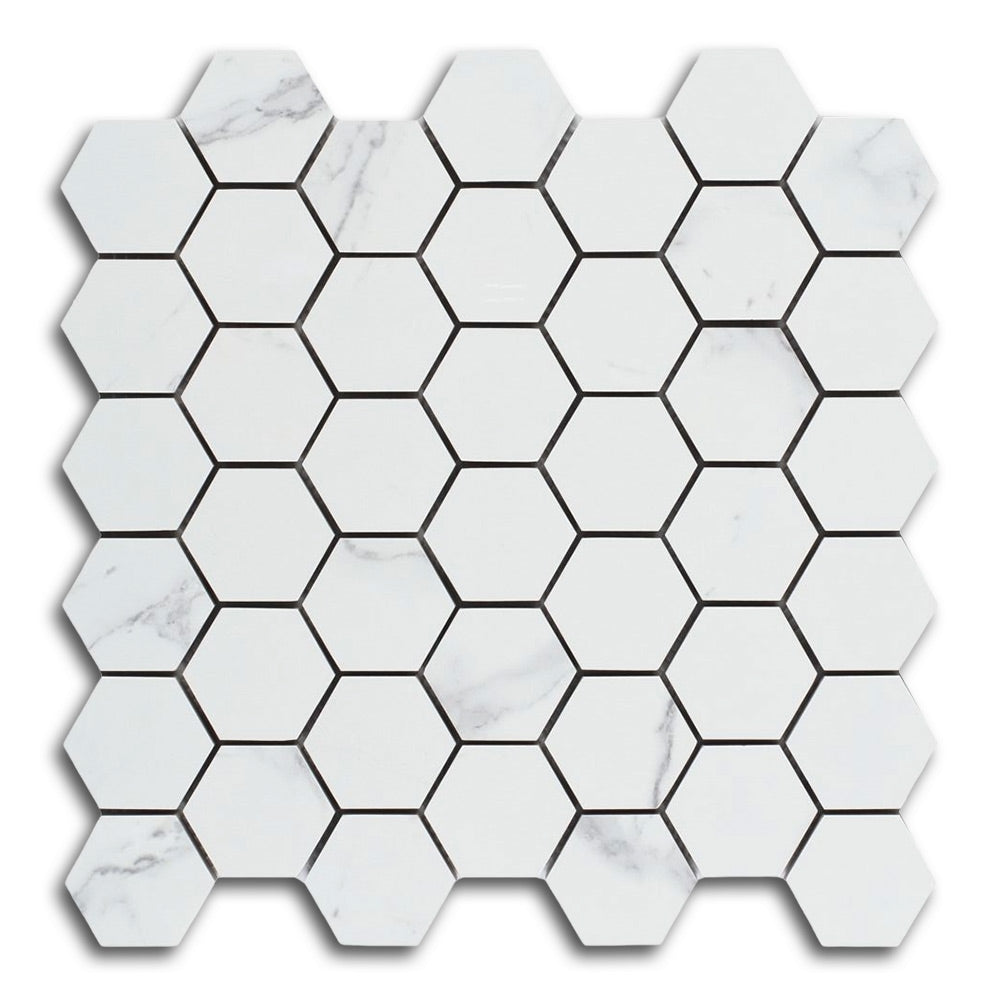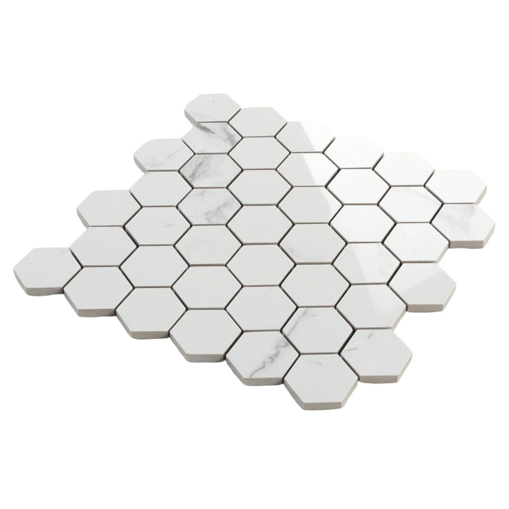 Borneo Carrara Pre Polished Hexagon Marble Laminated Porcelain Mosaic Tile