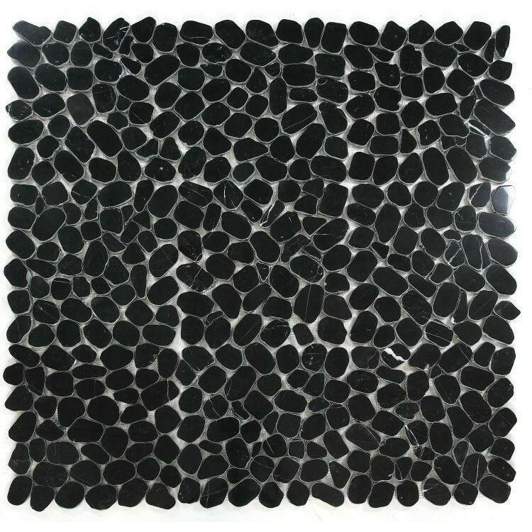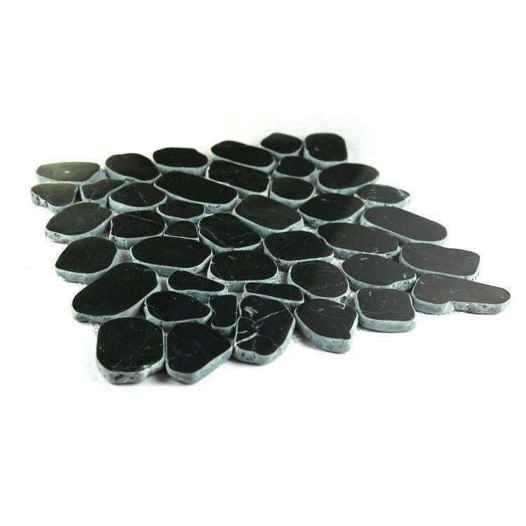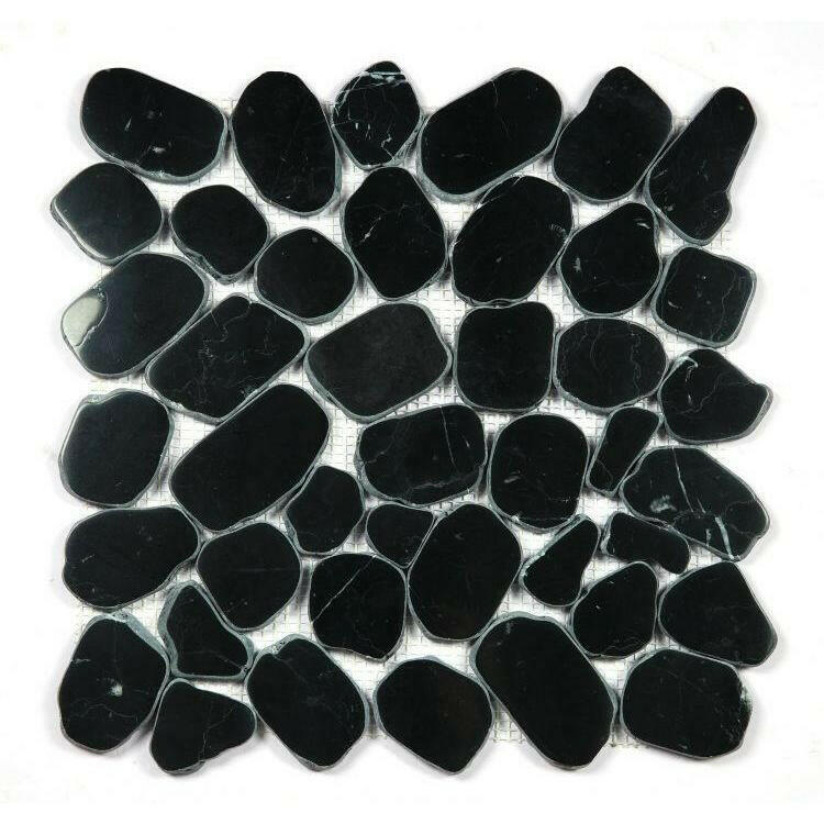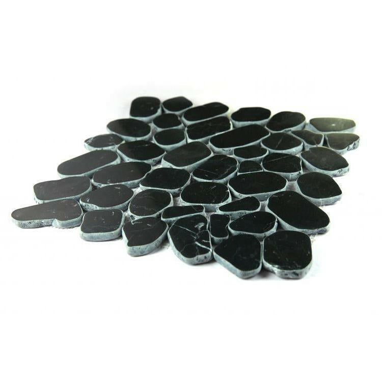 Brook Marquina Polished Pebble Marble Mosaic Tile