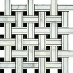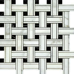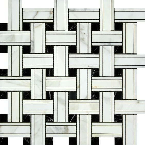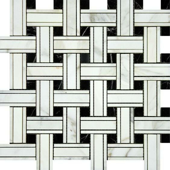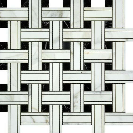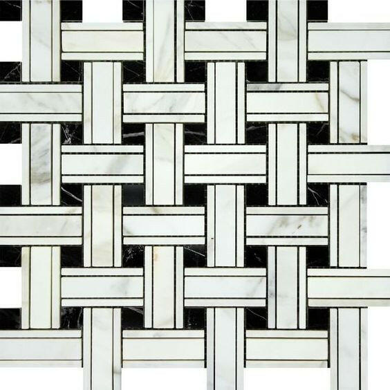 Calacatta Gold Marble Honed Triple Weave Mosaic Tile w/ Black Dots