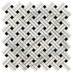 Calacatta Gold Marble Polished Stanza Basketweave Mosaic Tile w/ Black Dots
