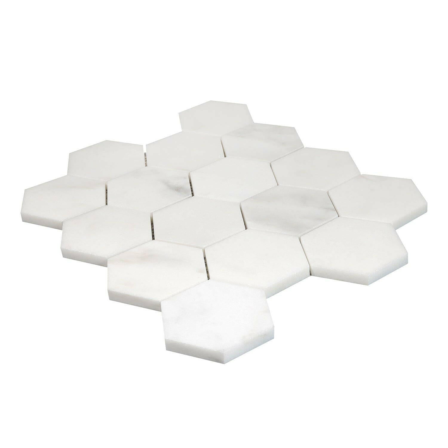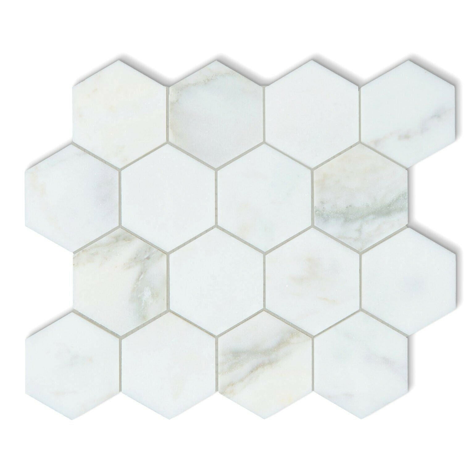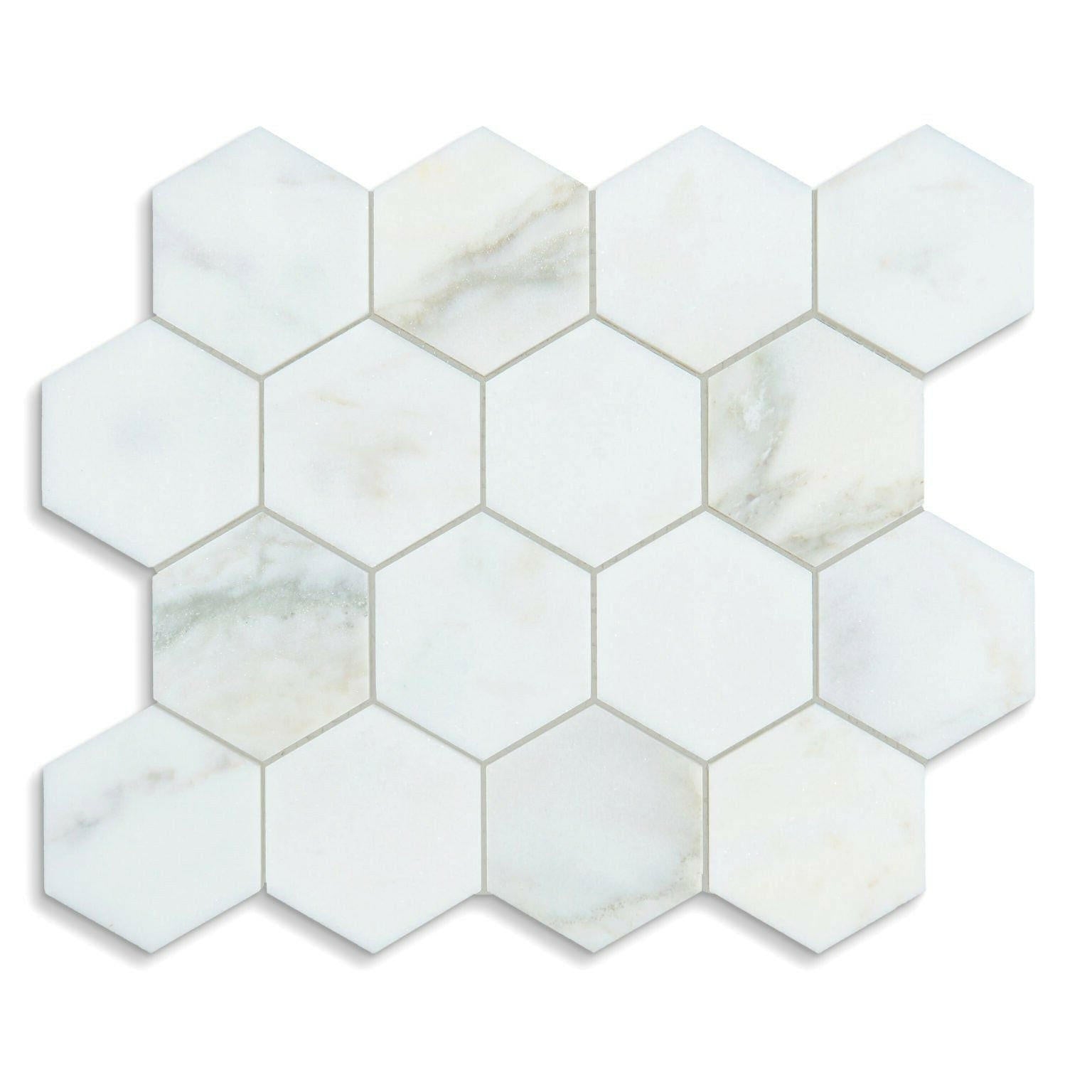 Premium Quality 3" TURKISH CALACATTA OLIVA MARBLE HONED HEXAGON MOSAIC TILE