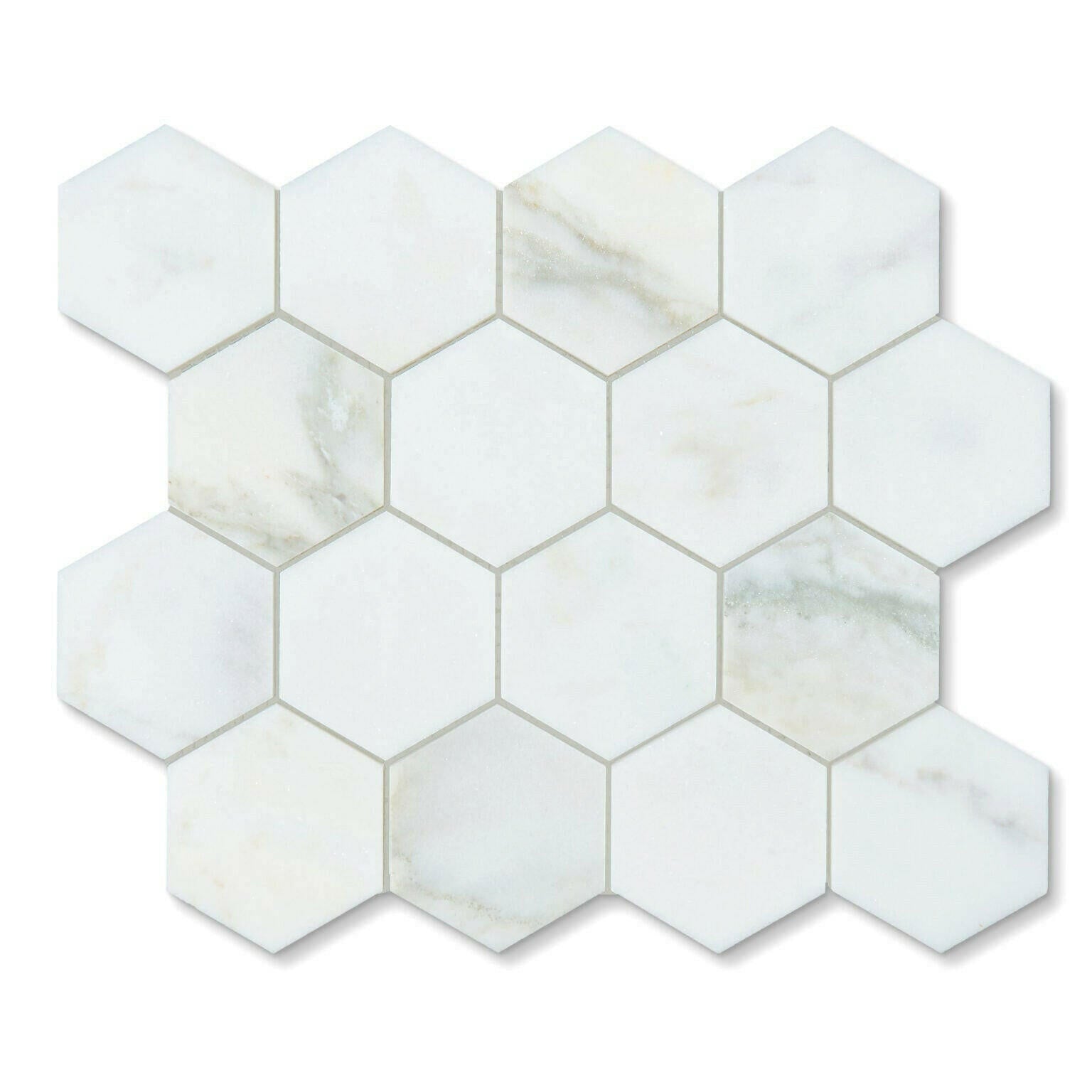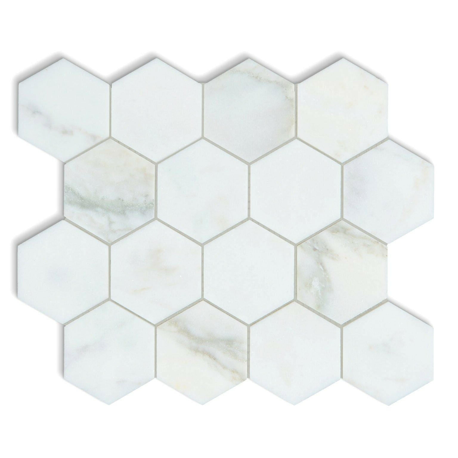 Calacatta Oliva Marble Honed 3" Hexagon Mosaic Tile