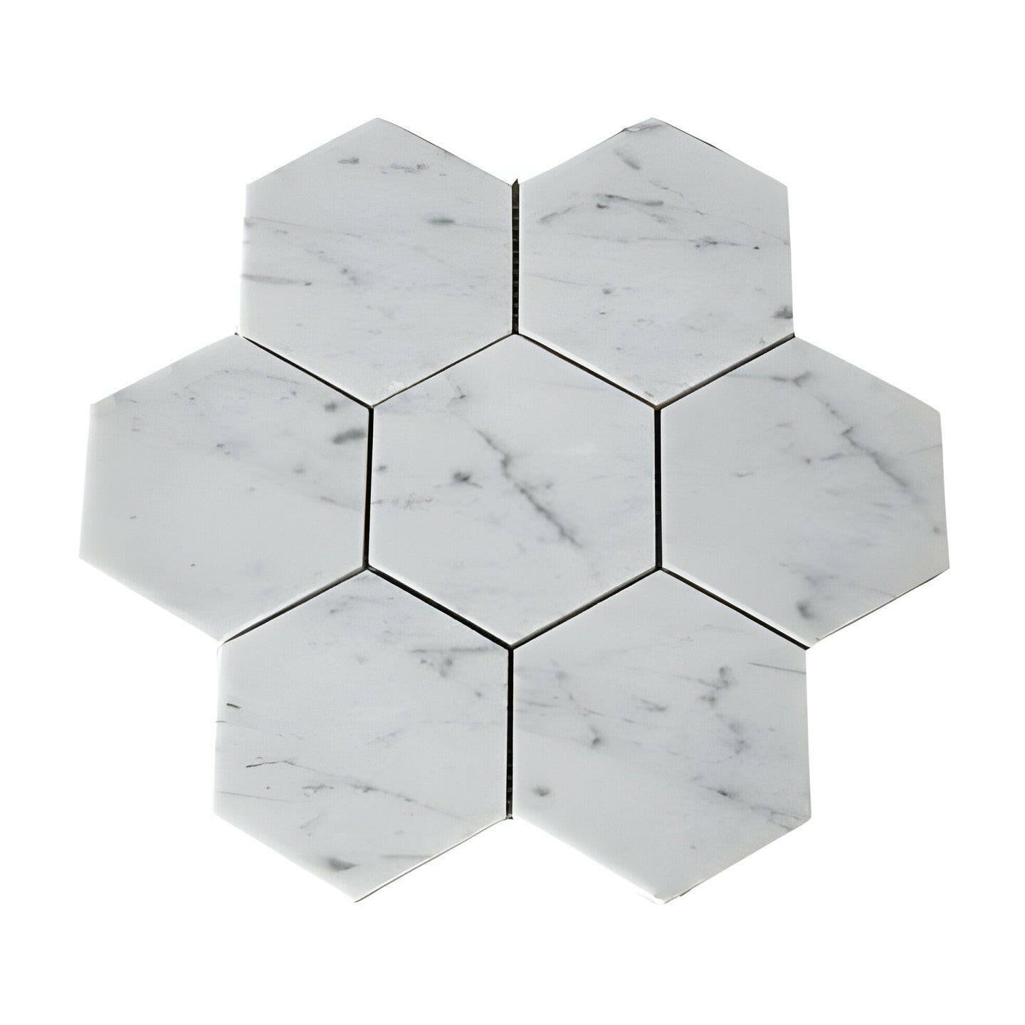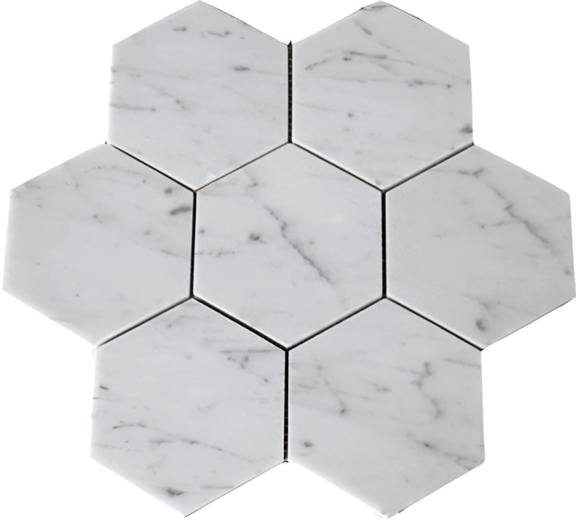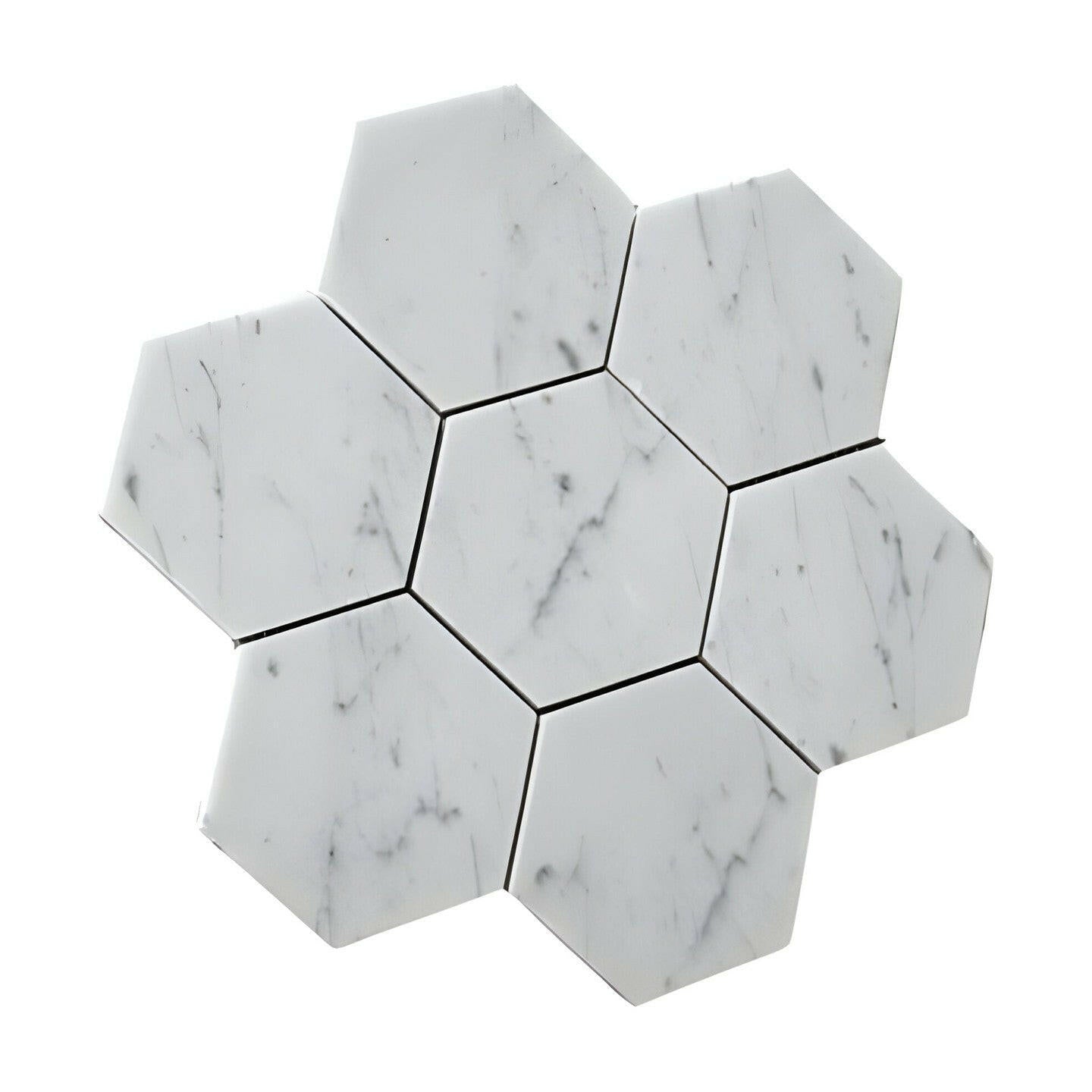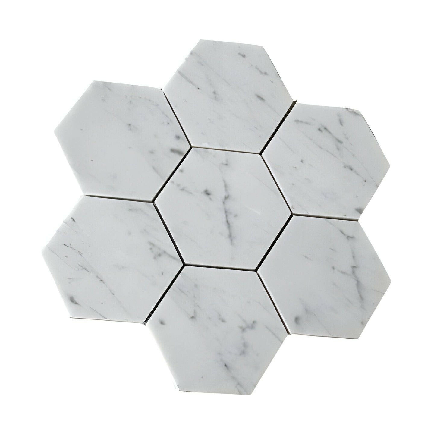 Premium Quality 5" ITALIAN CARRARA WHITE MARBLE LARGE HEXAGON POLISHED MOSAIC TILE