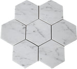 Carrara White Marble Polished 5" Large Hexagon Mosaic Tile