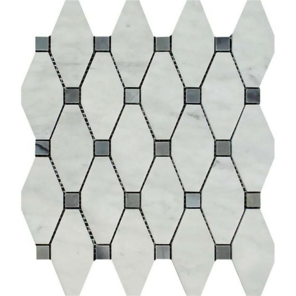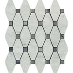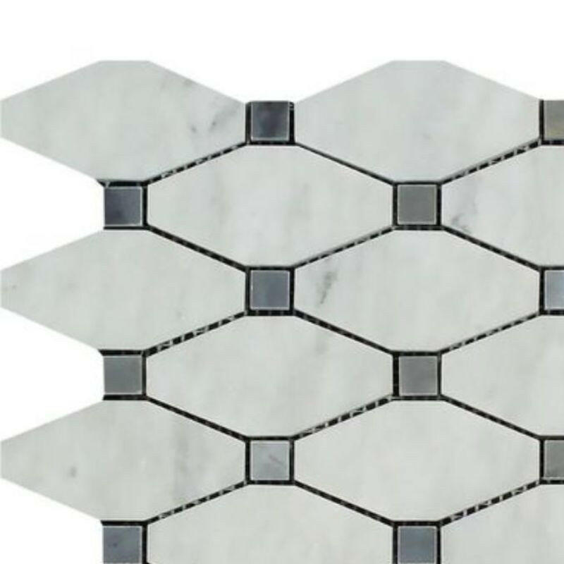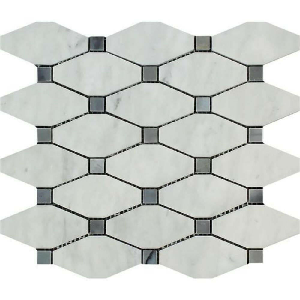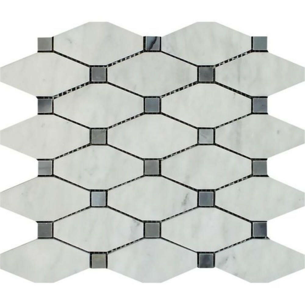 Carrara White Marble Polished Octave Pattern Mosaic Tile w/ Blue-Gray Dots