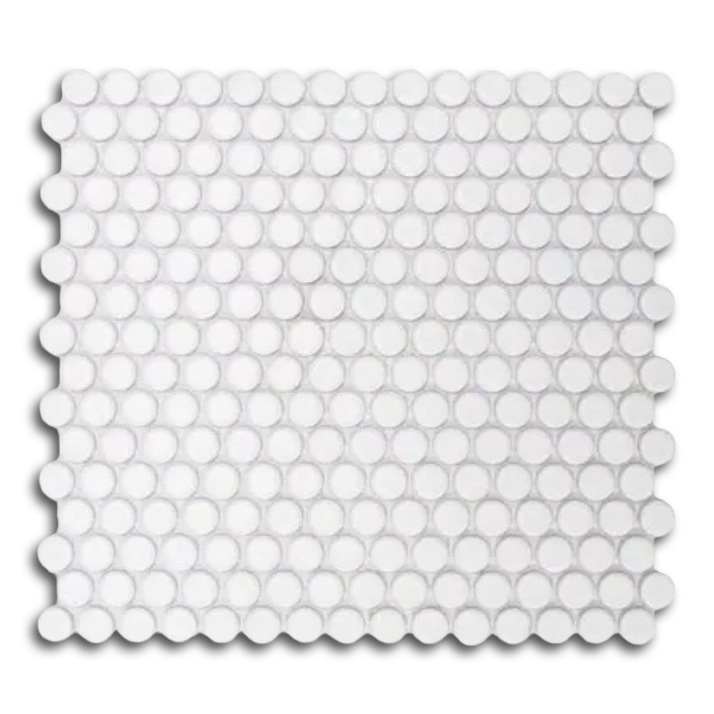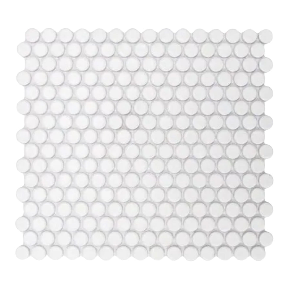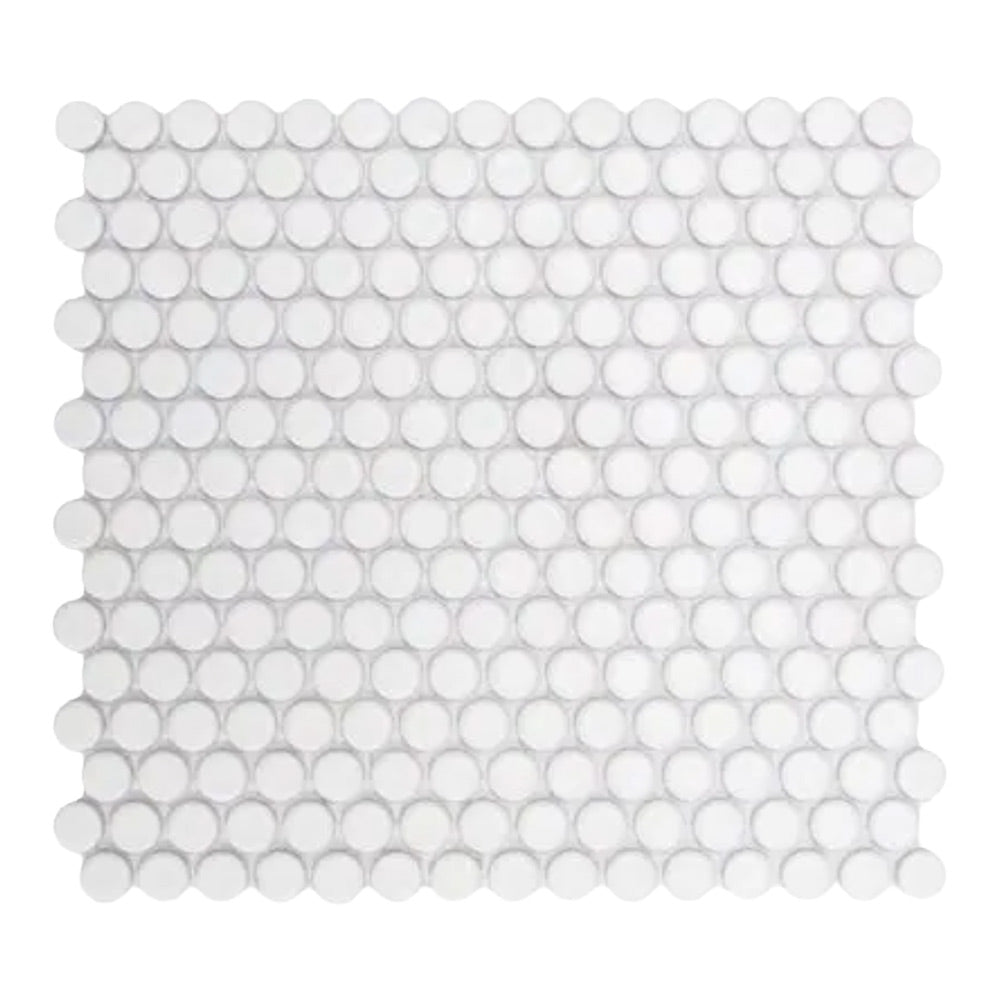 Each 0.75” round tile is mesh-mounted for quick installation and seamless alignment. The glossy porcelain surface enhances brightness while adding sleek, smooth texture. Whether you’re renovating a vintage-style bathroom or designing a contemporary kitchen backsplash, this tile offers both timeless appeal and modern functionality.