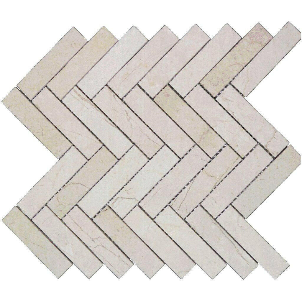 Crema Marfil Marble Honed 1x4 Herringbone Mosaic Tile