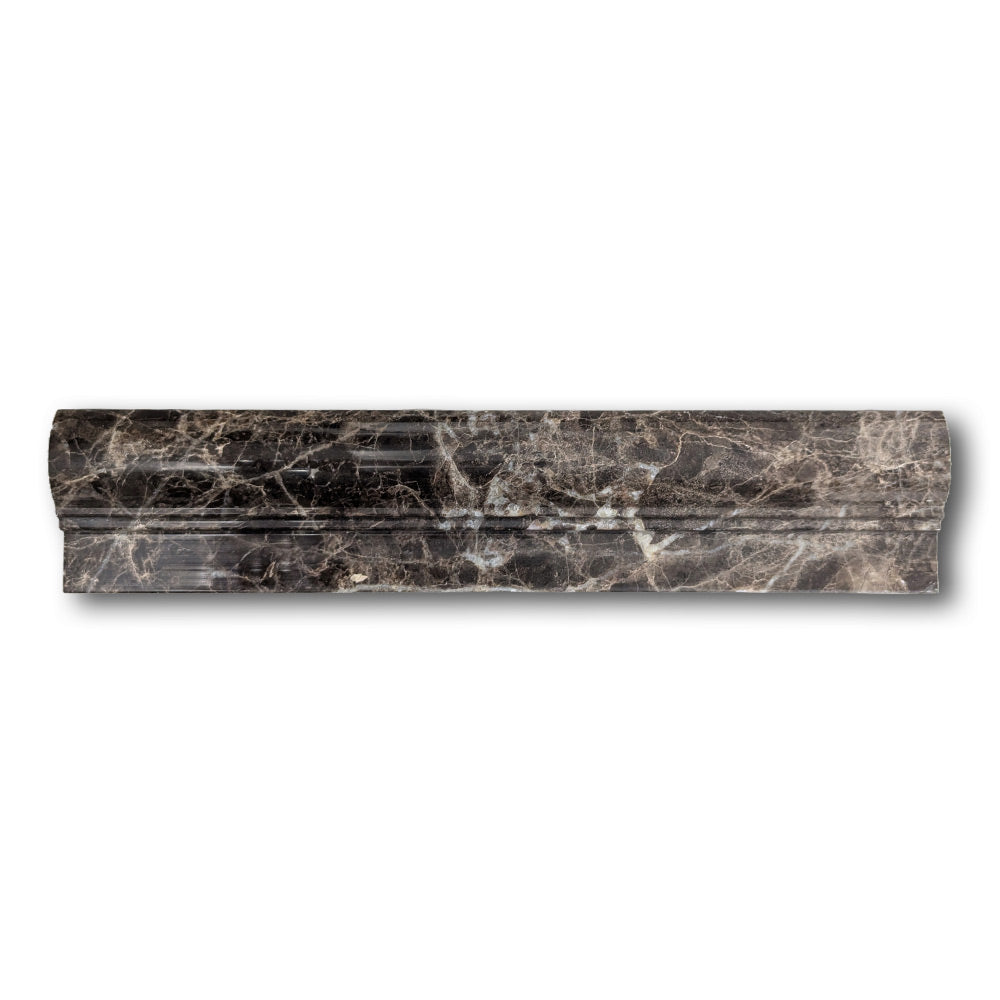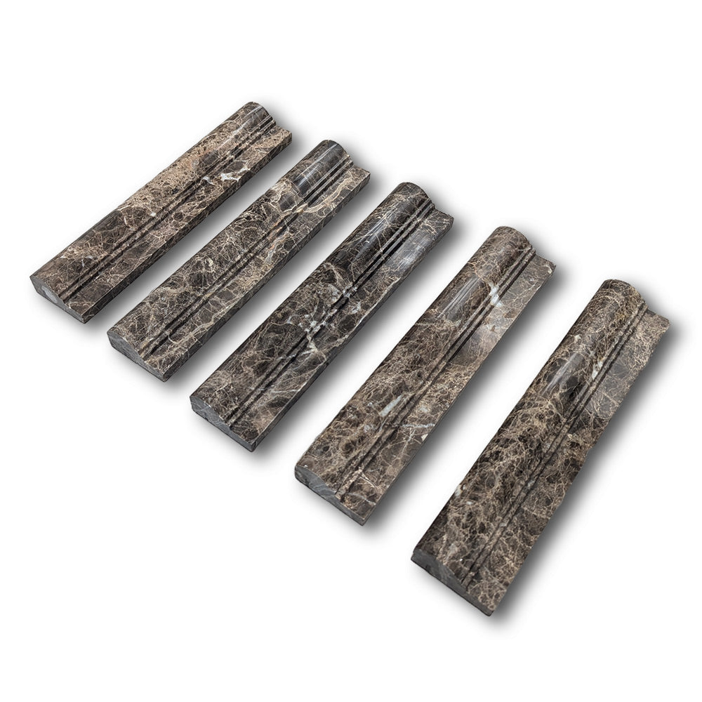 The polished Emperador Dark marble offers deep chocolate and espresso tones laced with light veining, giving each piece a rich, natural elegance. Crafted in the traditional OG-2 profile, this chair rail molding trim brings architectural character and upscale flair to any design.