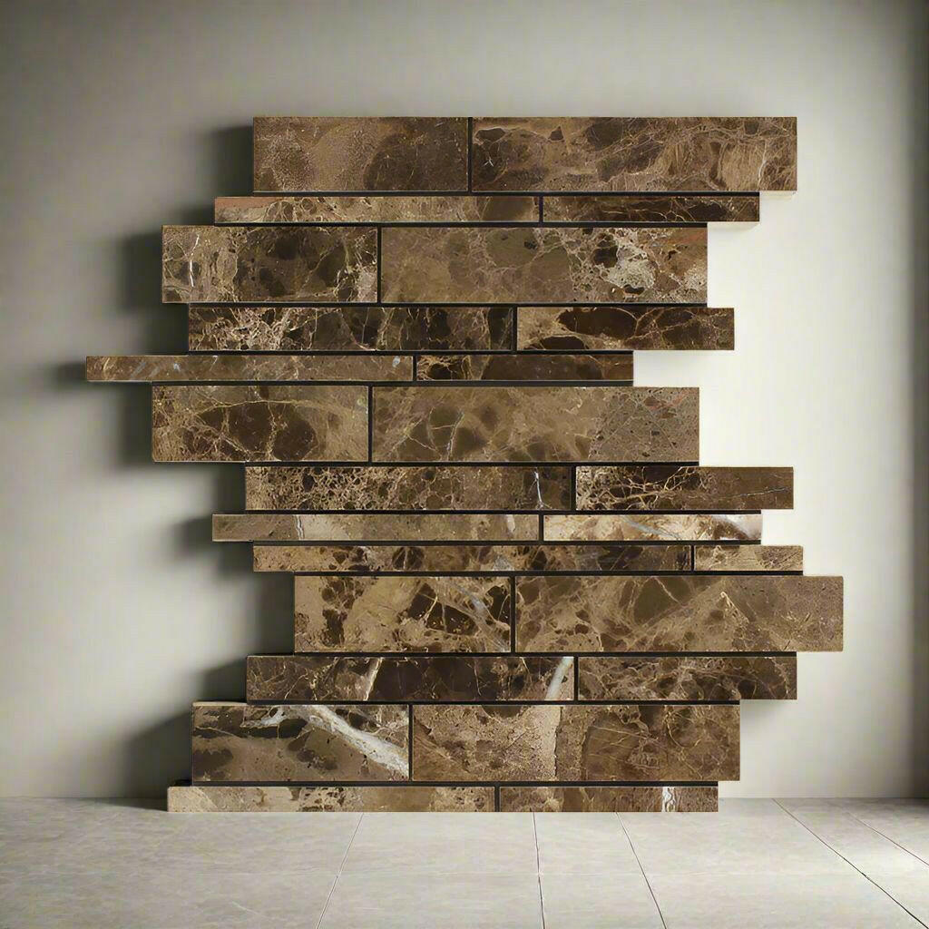 Premium Quality SPANISH EMPERADOR DARK MARBLE POLISHED RANDOM STRIP (MANHATTAN) MOSAIC TILE