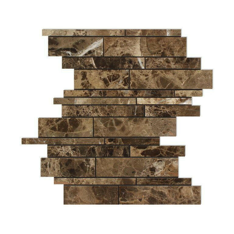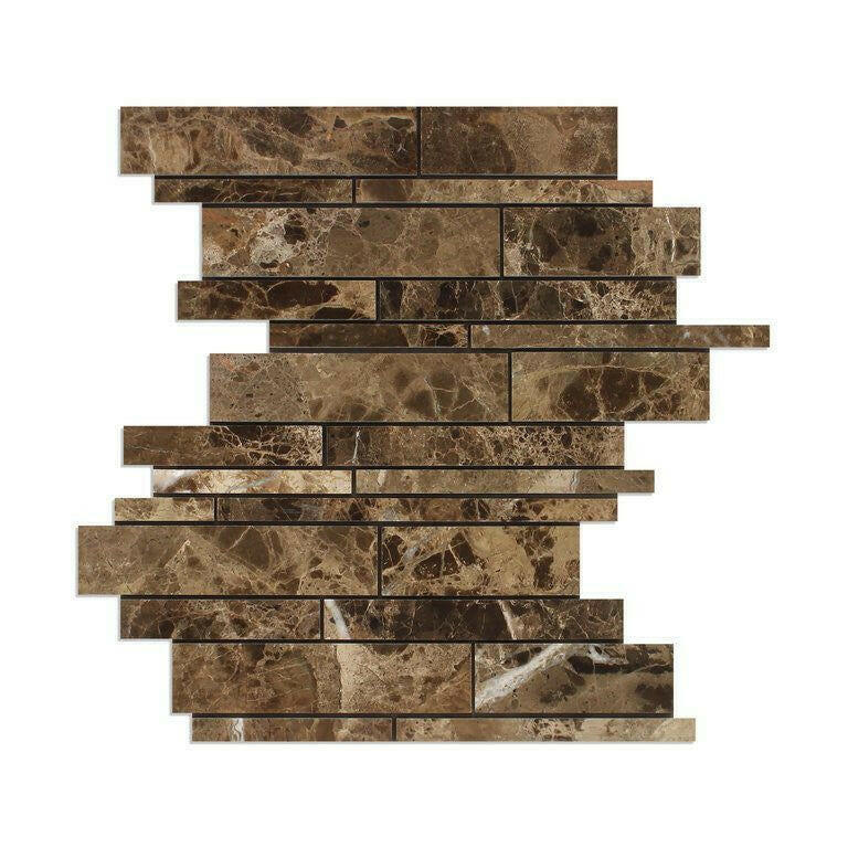 Emperador Dark Marble Polished Random Strip Mosaic Tile