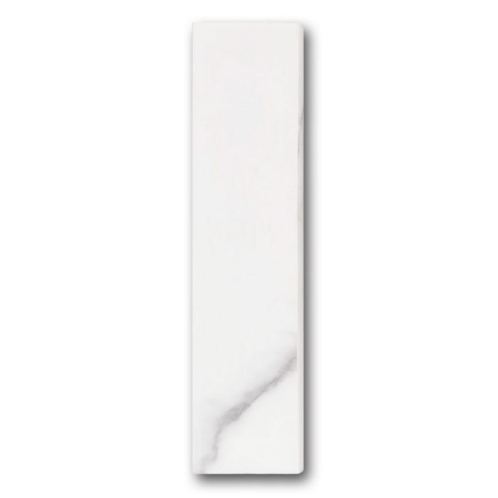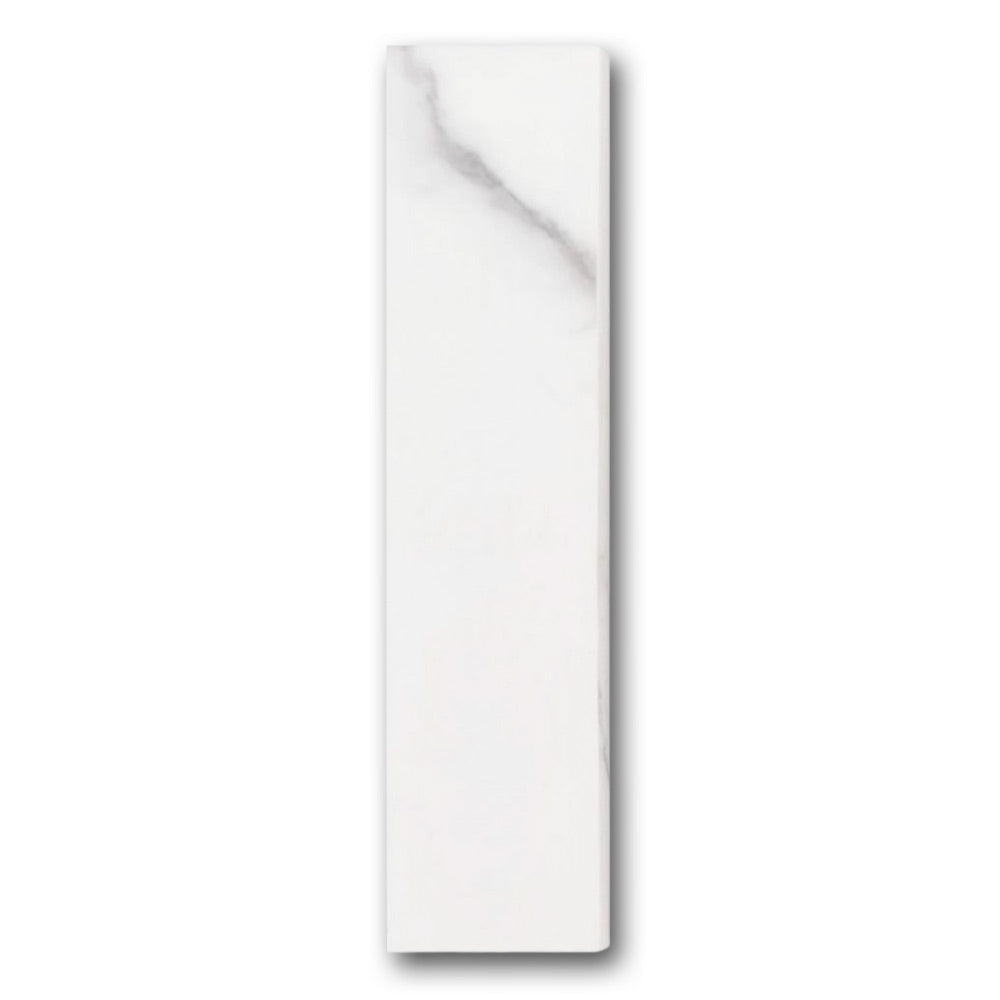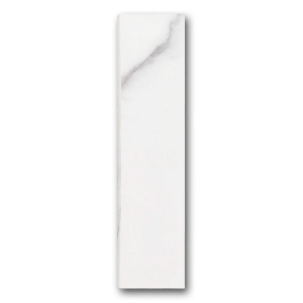 Finish your tile project with timeless elegance using the Famea Statuario Soft Bullnose 3x12 Molding Trim. This marble-look bullnose trim creates a clean, seamless transition along walls, backsplashes, and tiled edges. Its soft white color and subtle gray veining echo the luxury of natural Statuario marble—without the maintenance or cost.
