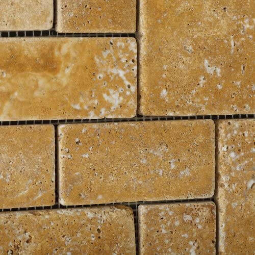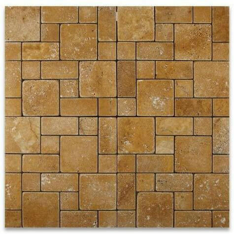Gold / Yellow Travertine 3-Pieced Mini-Pattern Tumbled Mosaic Tile