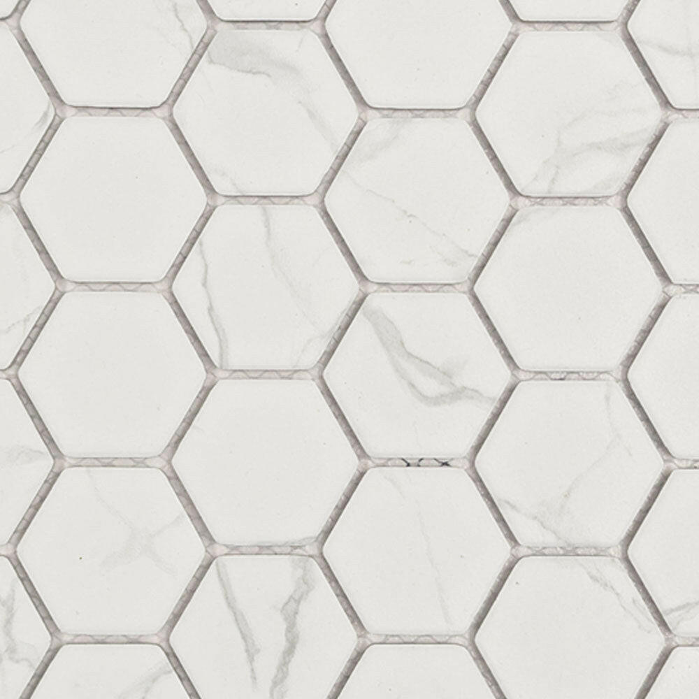 Transform your space with the timeless elegance of our Milano Silver Matte 2" Hexagon Porcelain Mosaic Tile. Designed to replicate the luxurious appearance of natural marble, this high-quality. This porcelain mosaic tile delivers sophistication and style without the high maintenance requirements of real stone. Its matte finish and hexagonal shape add a modern yet classic appeal, making it a standout choice for a wide range of interior designs.