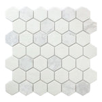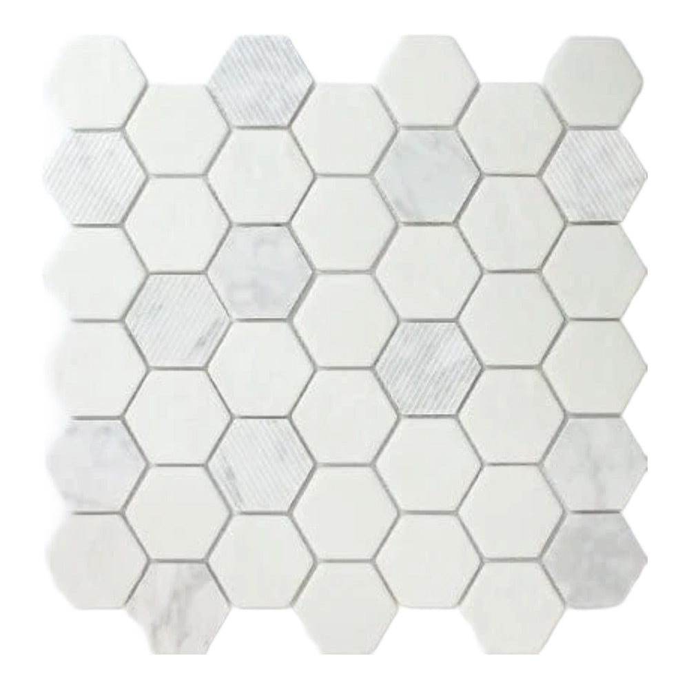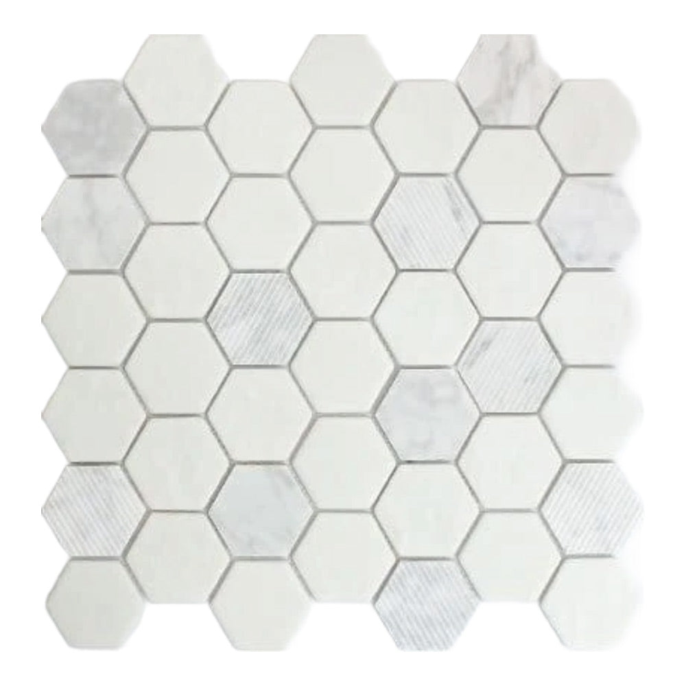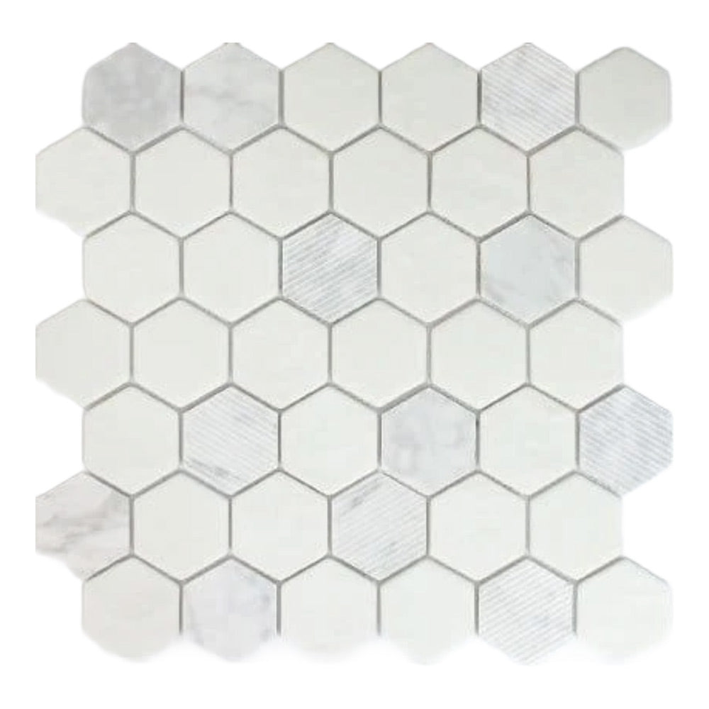 Mineralis Carrara Polished & Matte Hexagon Stone & Glass Mosaic Tile