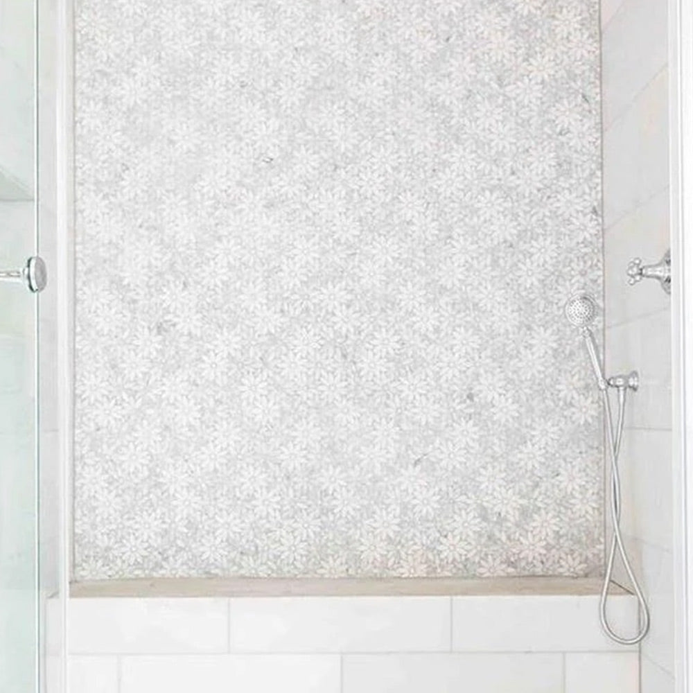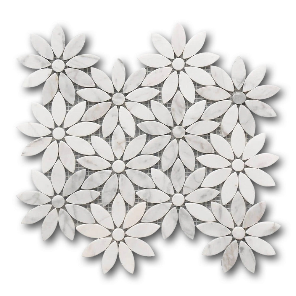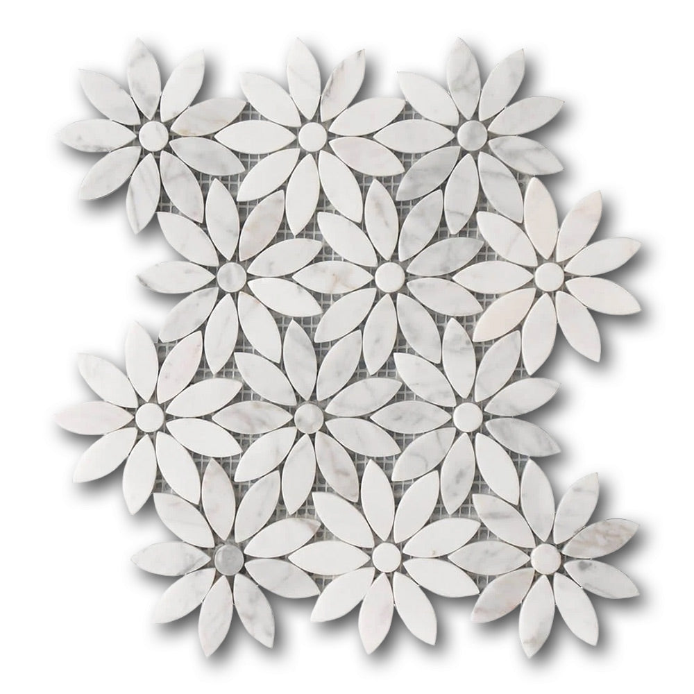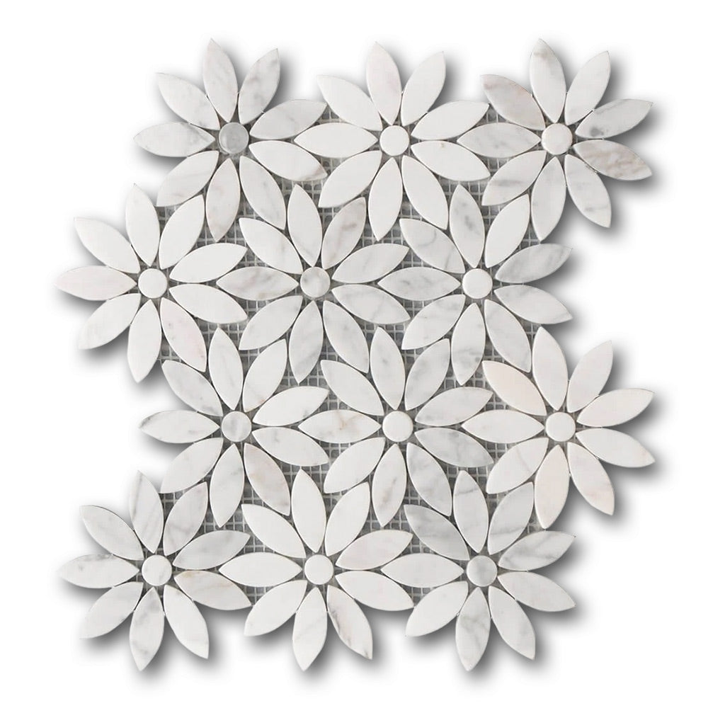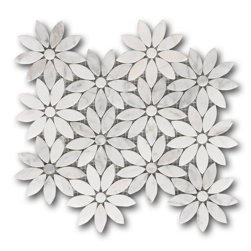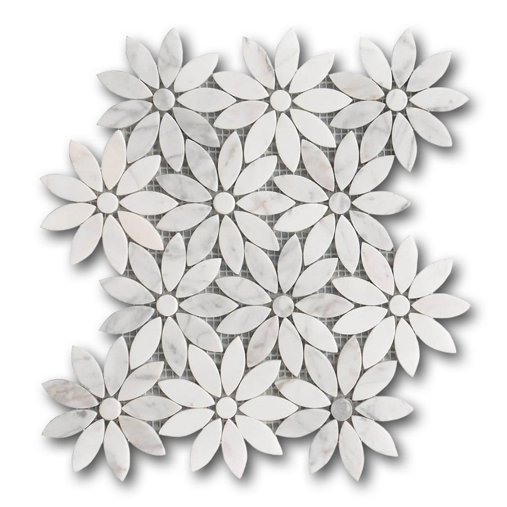 Mineralis Daisy Flower Polished Flower Stone & Glass Mosaic Tile