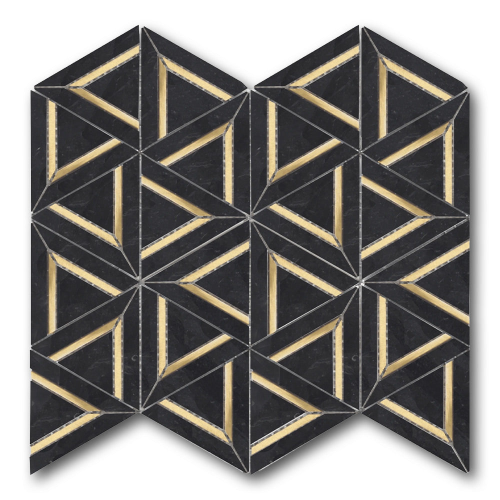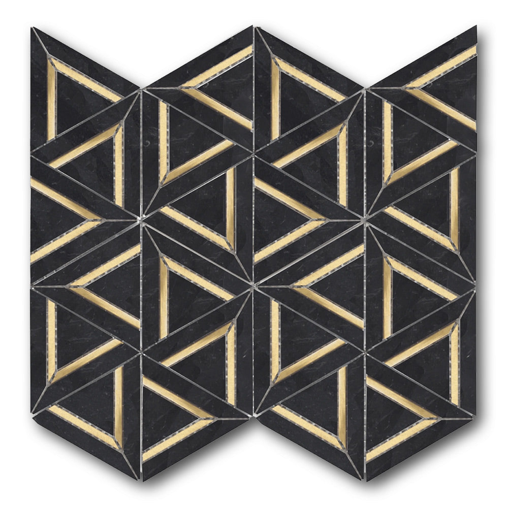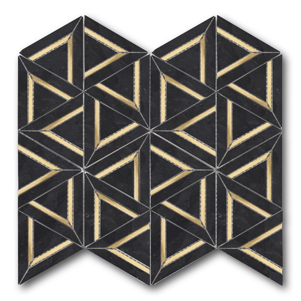 Mineralis Nero Marquina Metal Polished Geometric Stone & Glass Mosaic Tile