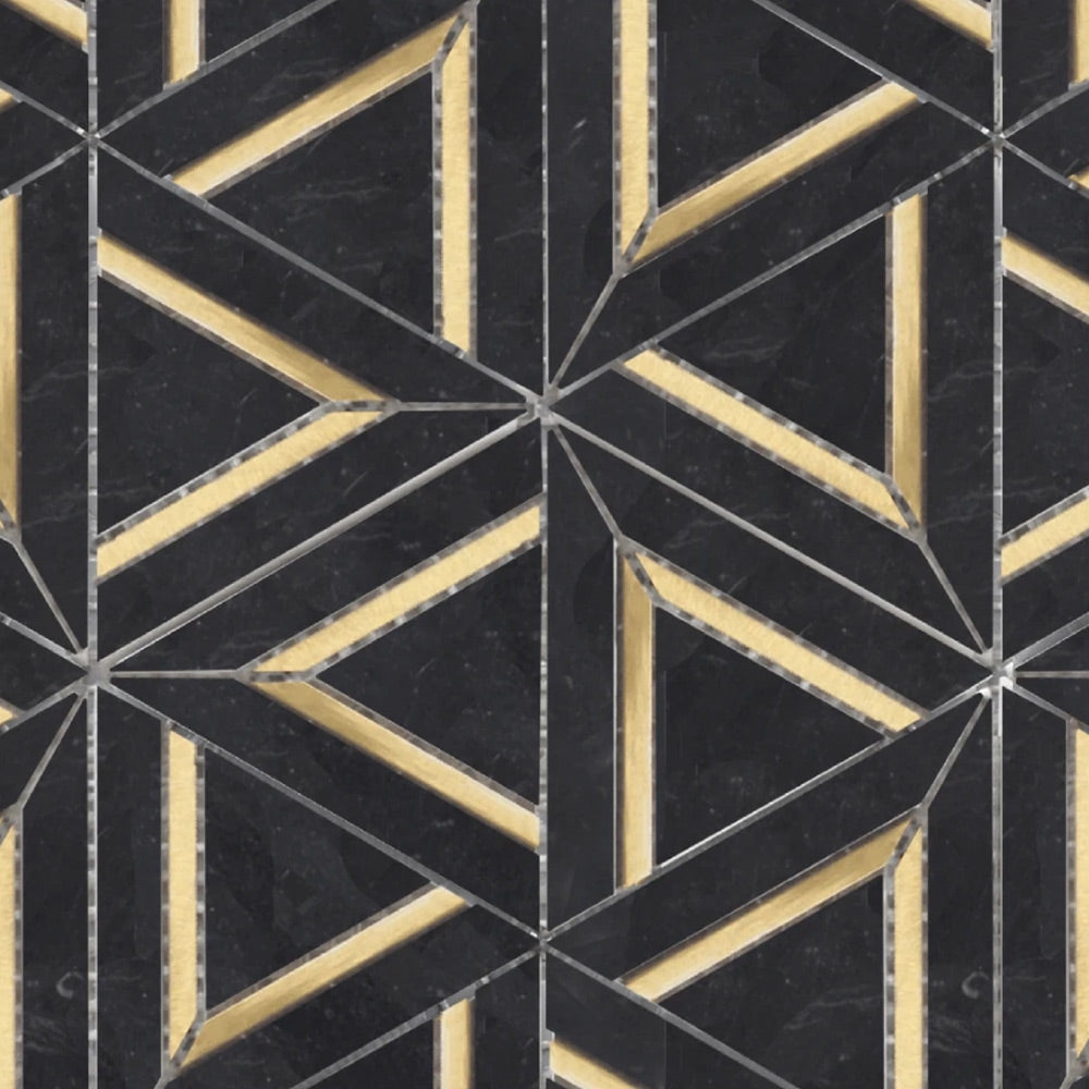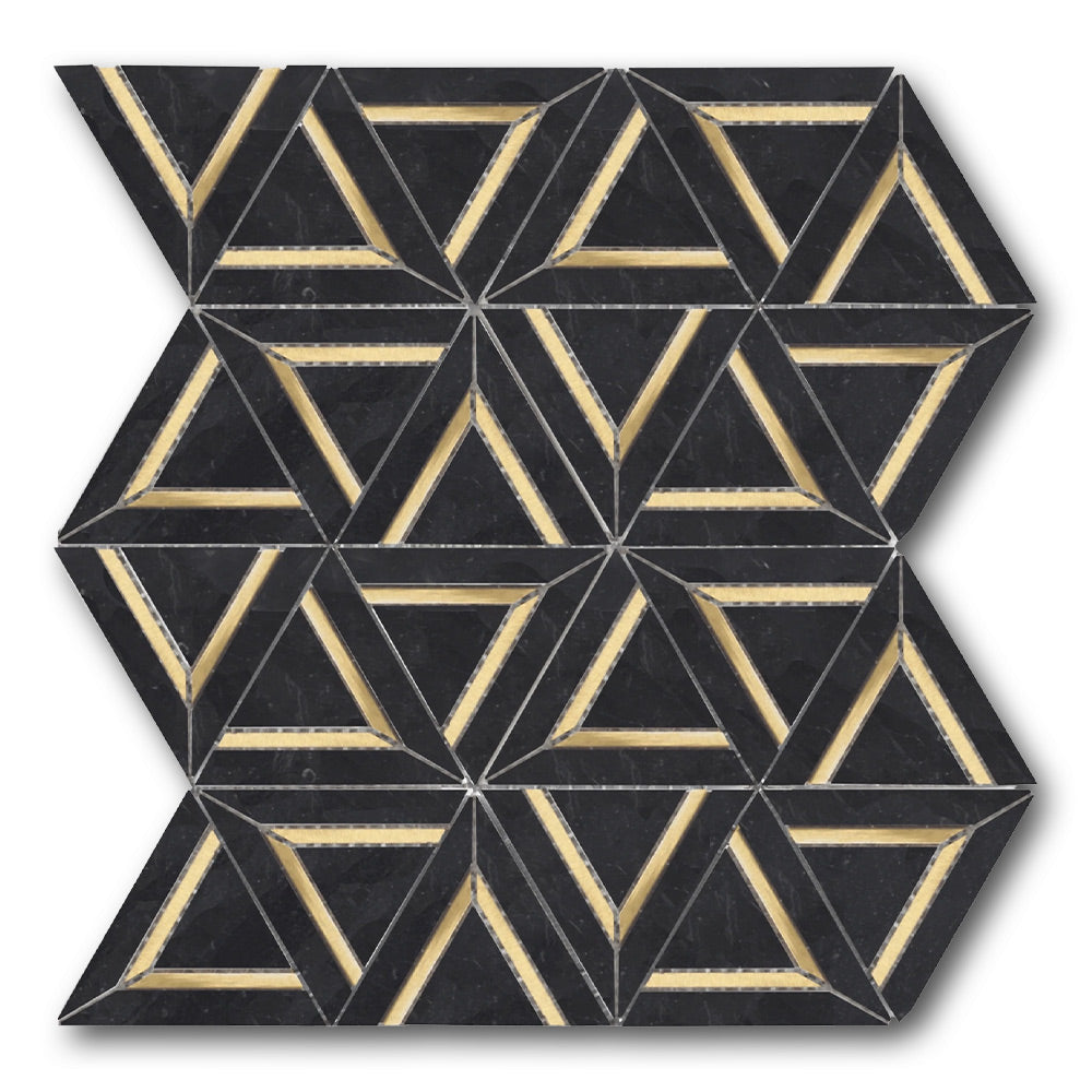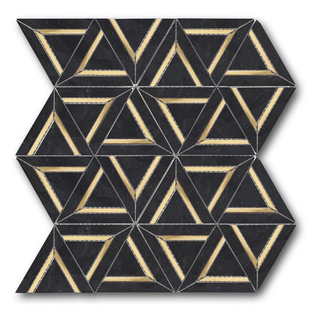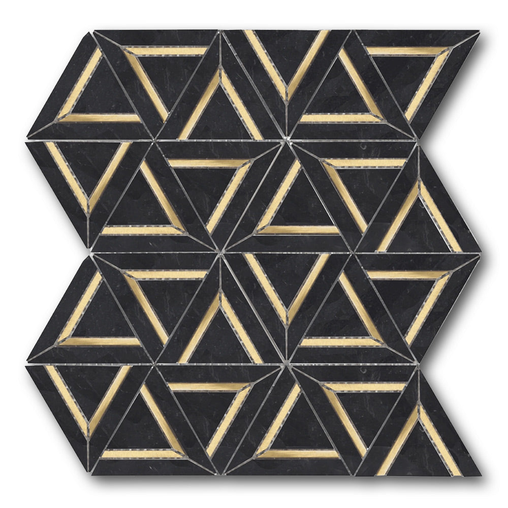 Mineralis Nero Marquina Metal Polished Geometric Stone & Glass Mosaic Tile