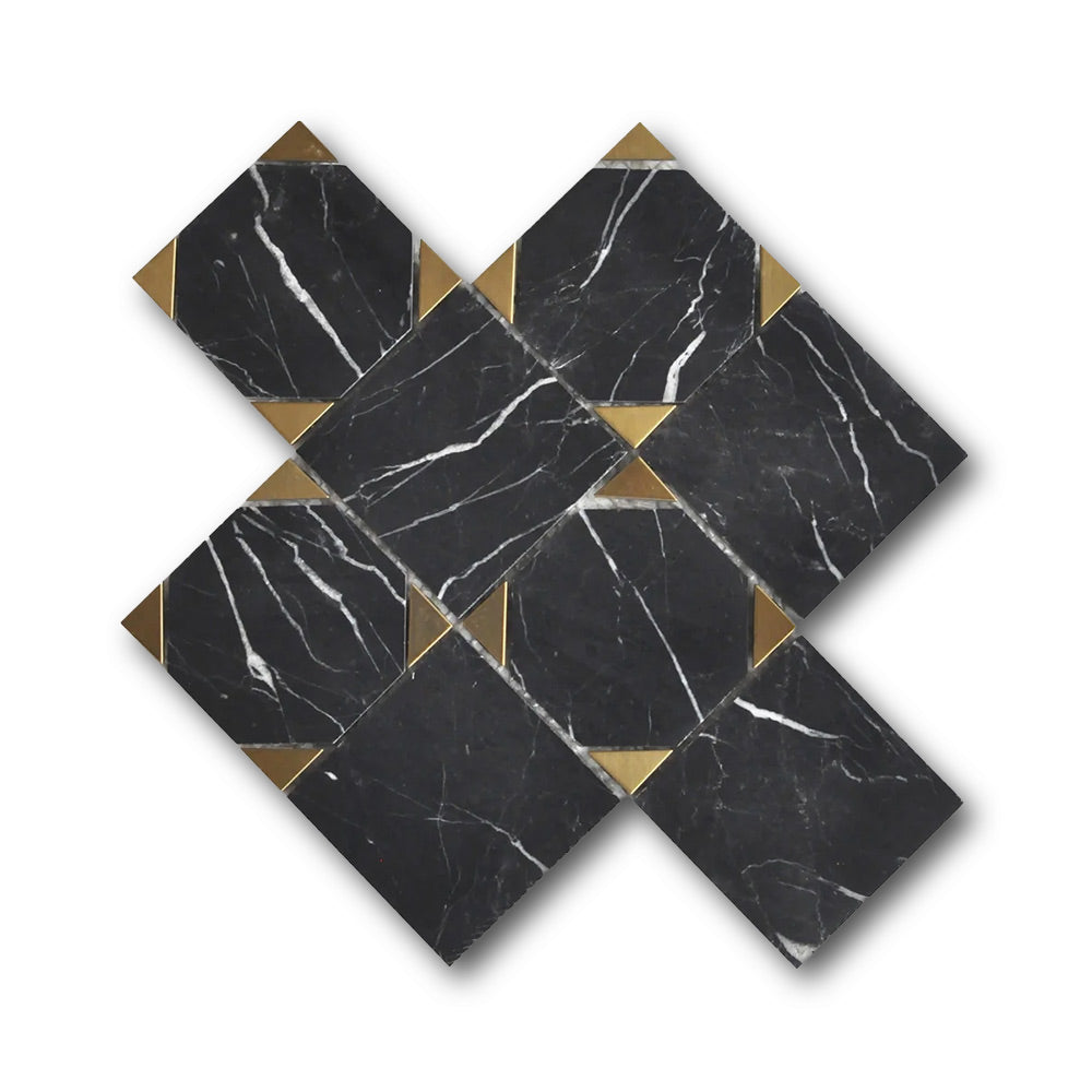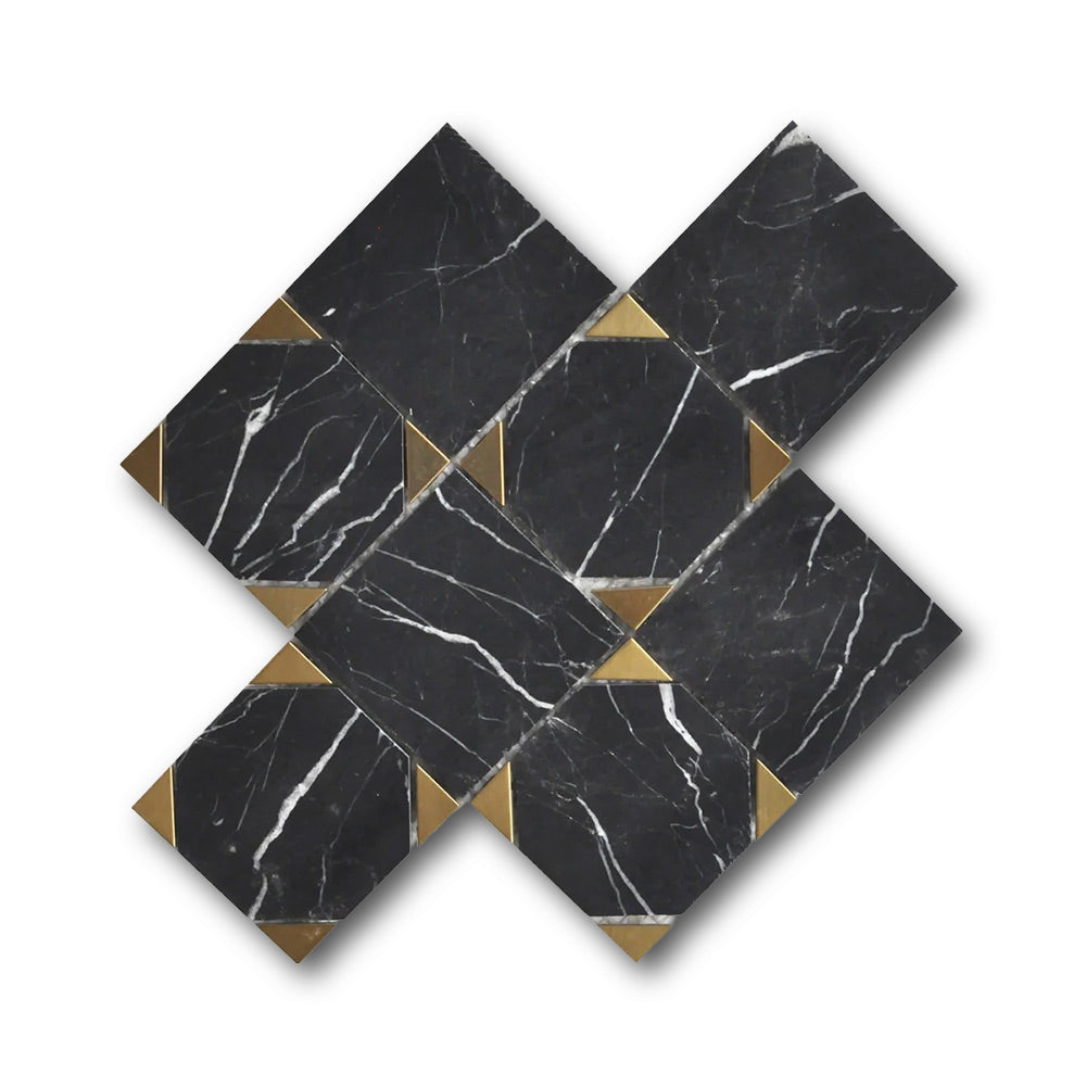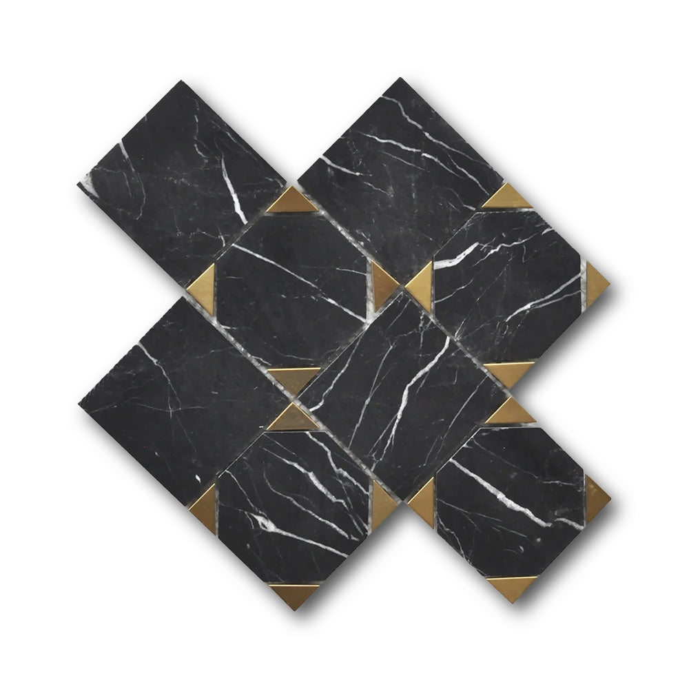 Mineralis Nero Marquina Polished Square Stone & Glass Mosaic Tile