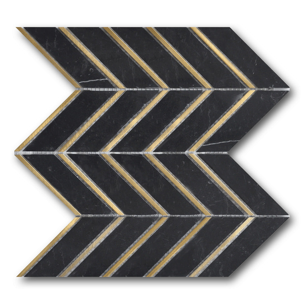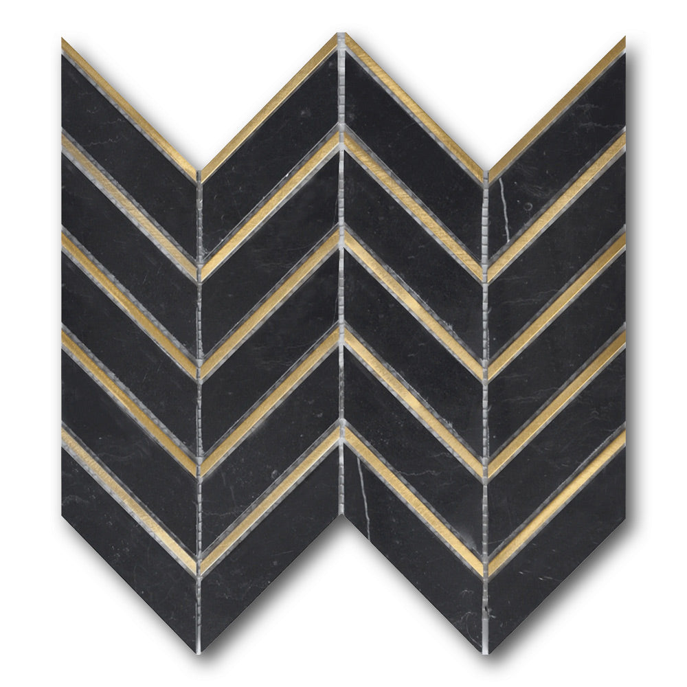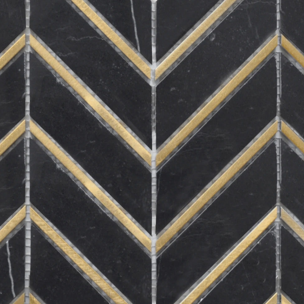 Mineralis Nero Metal Polished Chevron Stone & Glass Mosaic Tile