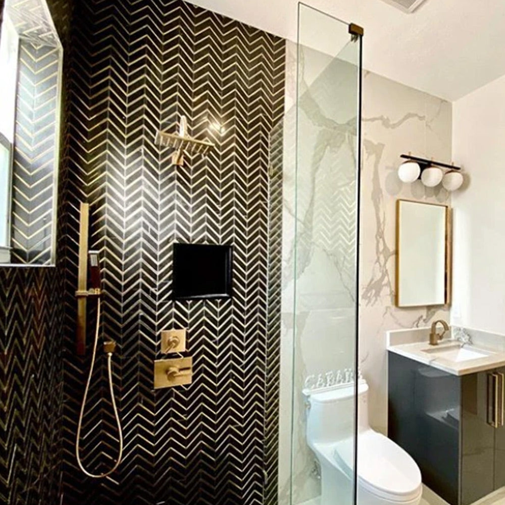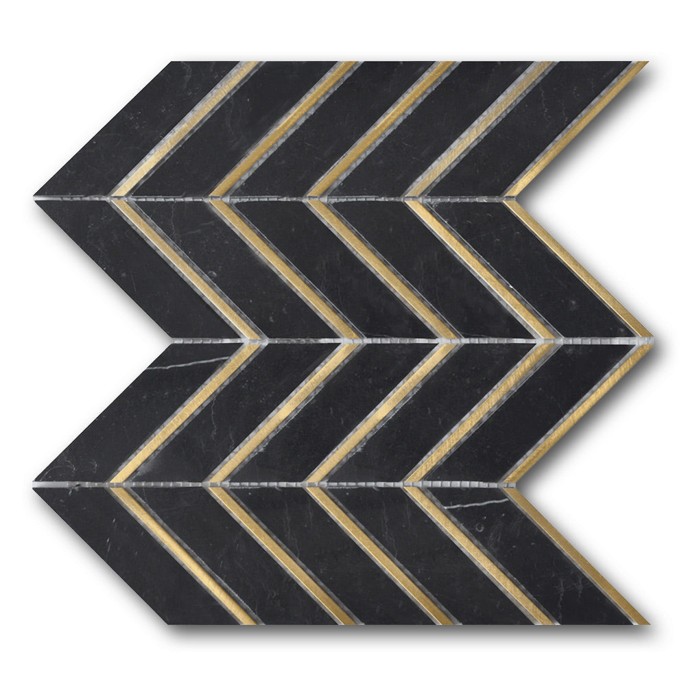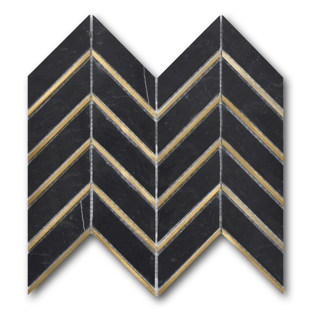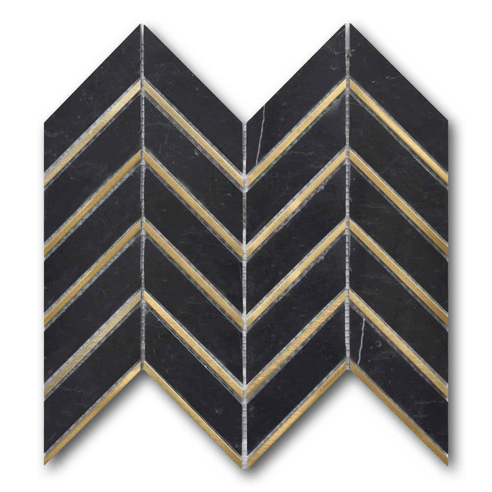 Mineralis Nero Metal Polished Chevron Stone & Glass Mosaic Tile